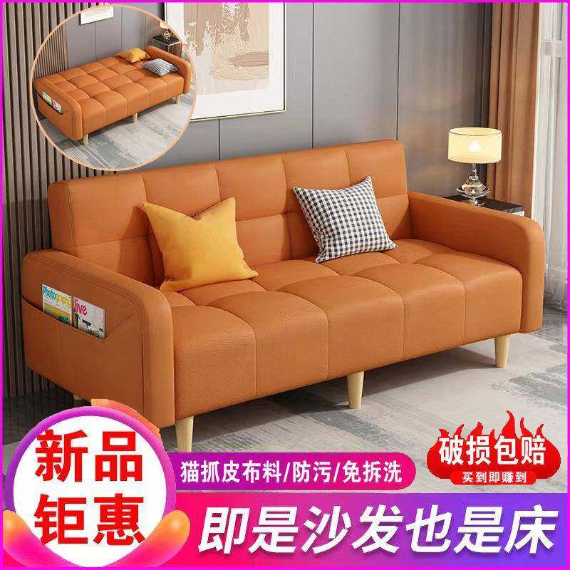 z%多功能折叠沙发床两用猫爪皮沙发简易客厅卧室租房小户型布艺沙