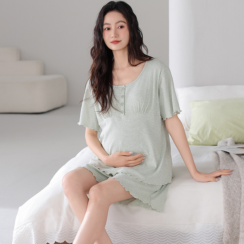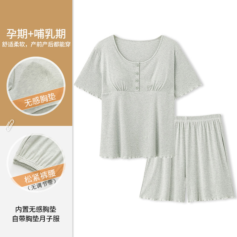 婧麒月子服孕妇睡衣夏季薄款产后带胸垫哺乳睡衣短袖短裤家居服女
