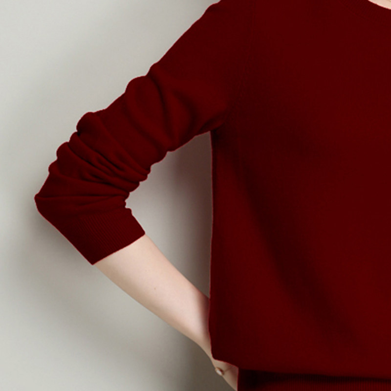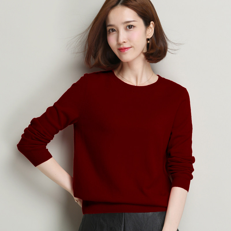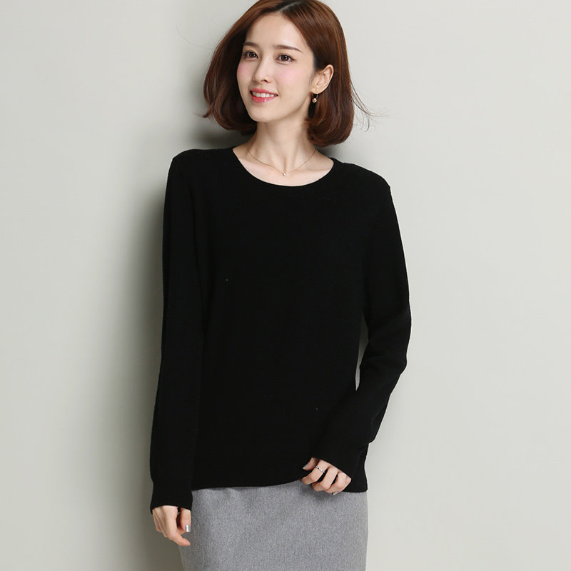 恒源祥女士圆领羊绒衫秋季新款套头衫短款毛衣纯色打底羊毛针织衫