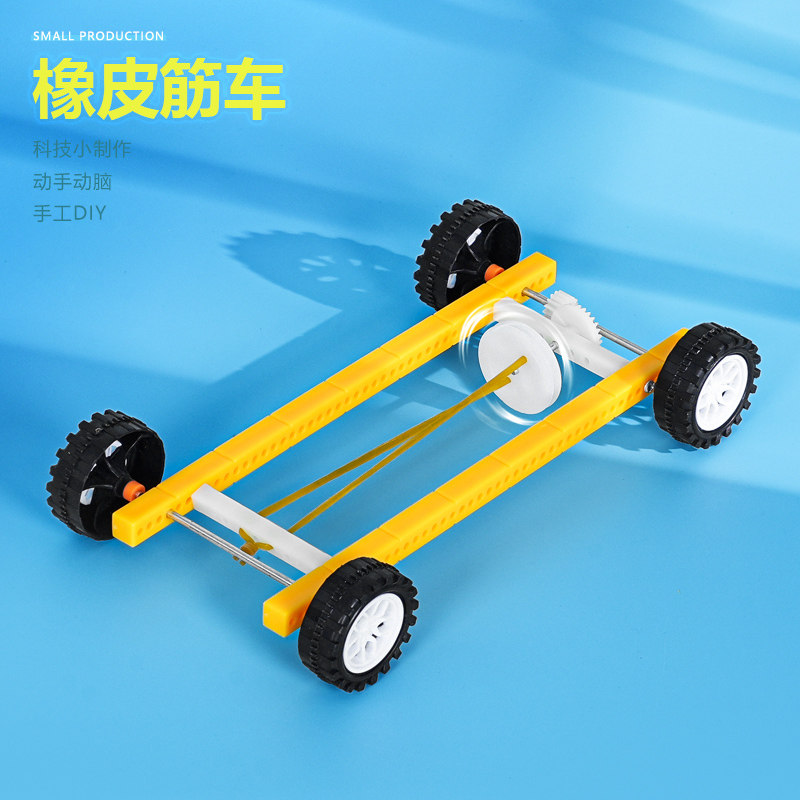 橡皮筋动力小车科技小制作学生发明弹性势能回力反冲车科学实验新