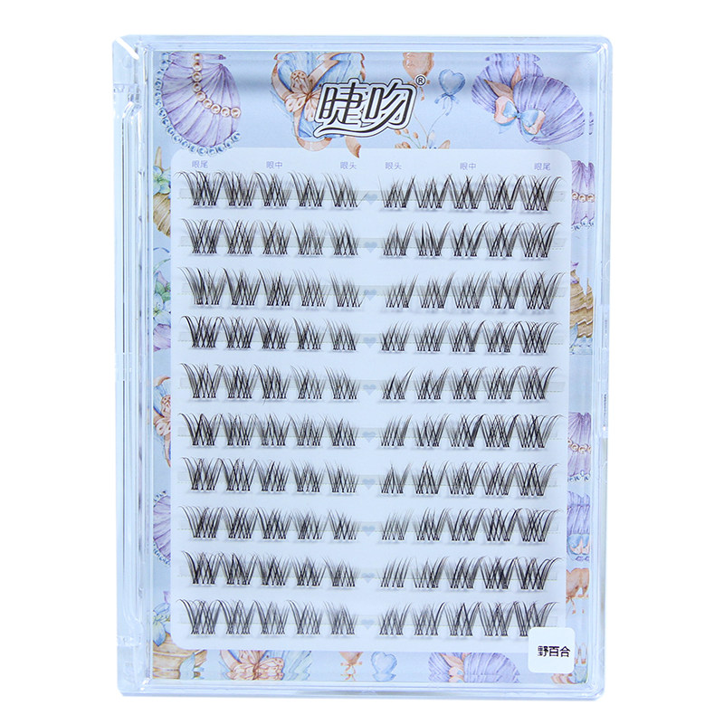 睫吻[野百合]淡颜微狐!W型眼尾拉长嫁接感前短后长自然卷翘睫毛