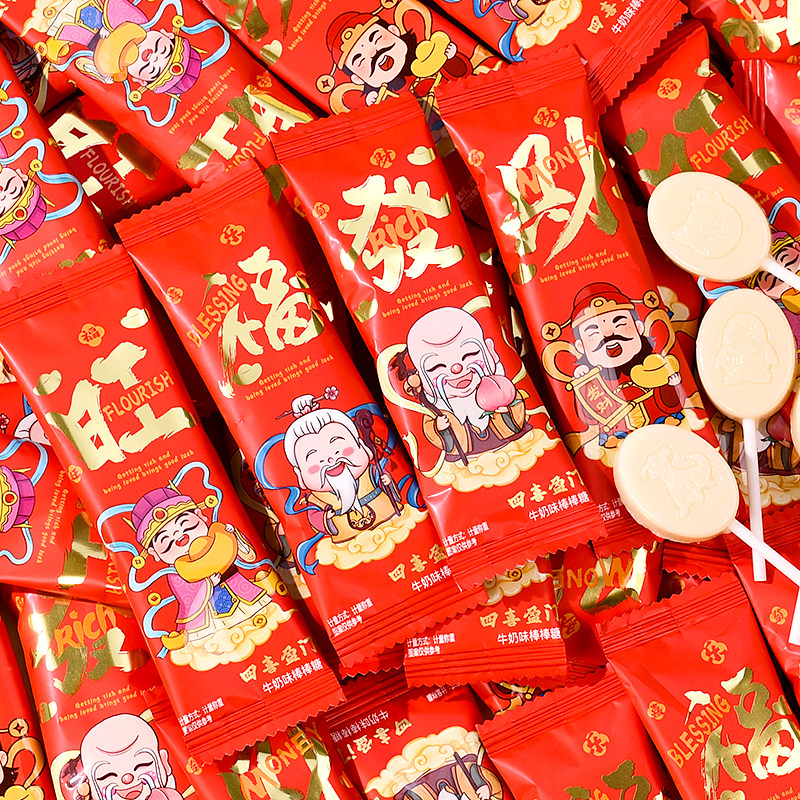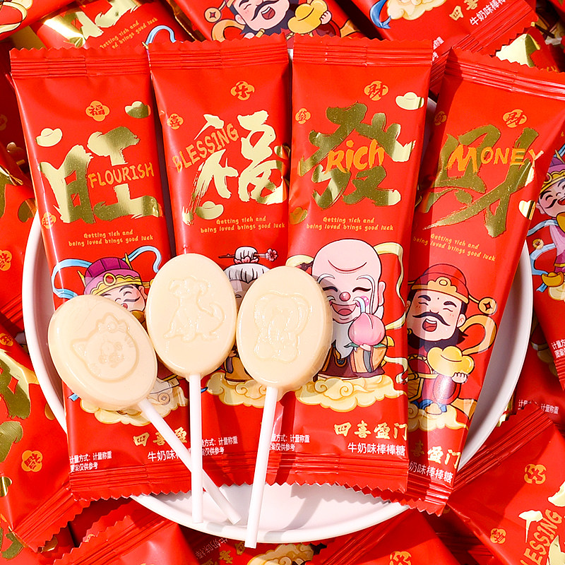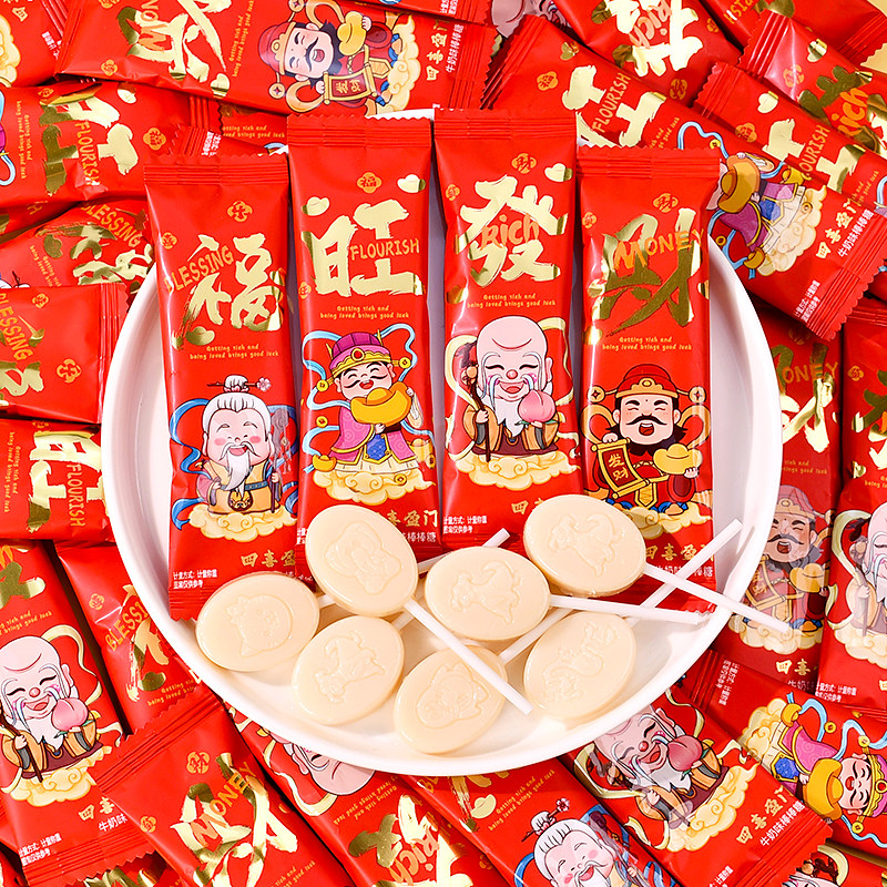 四喜牛奶味棒棒糖财神年货糖果零食乔迁喜糖软糖混装散装新年订婚