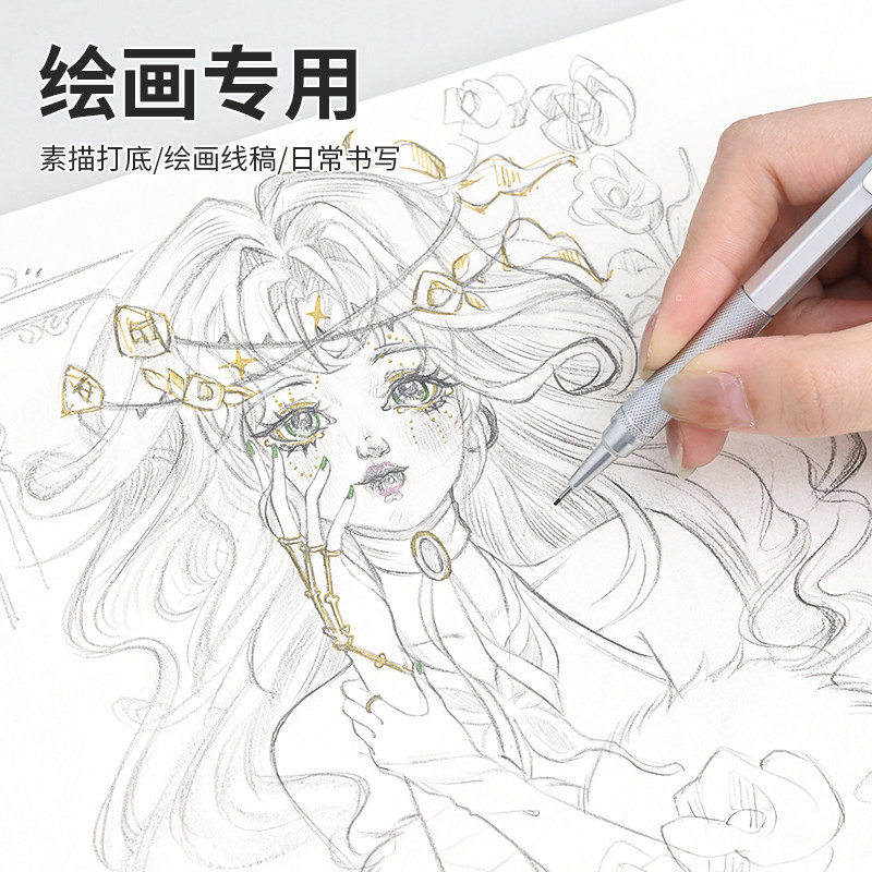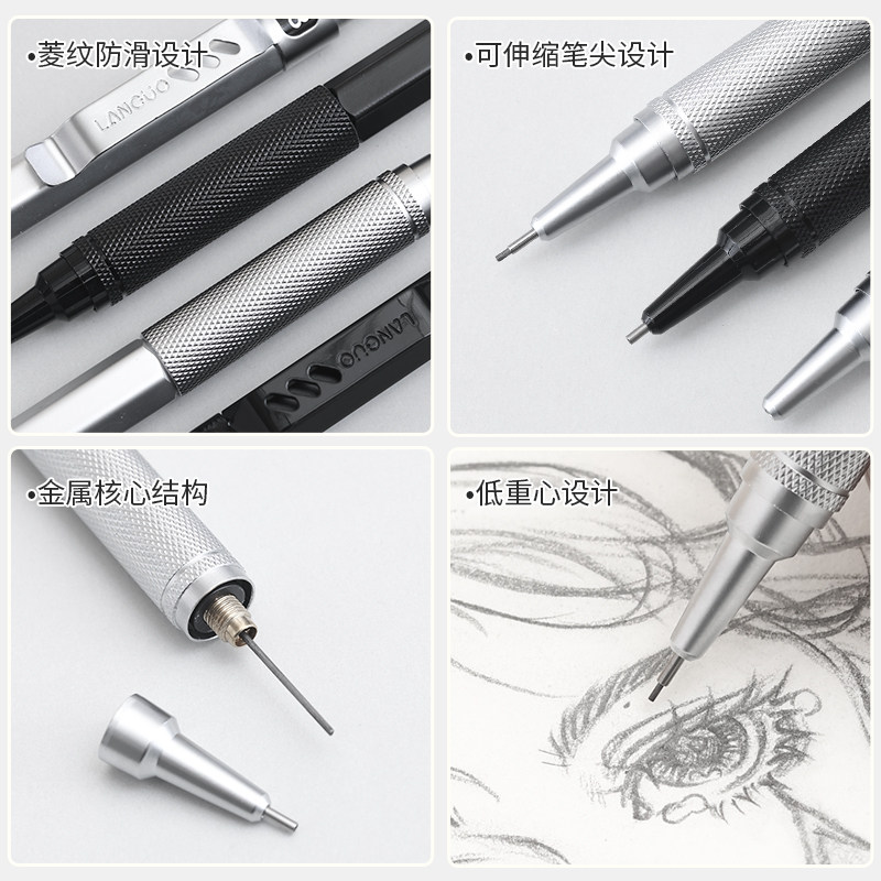 金属自动铅笔0.5专业绘图hb自动铅笔素描活动铅笔低重心绘画专用