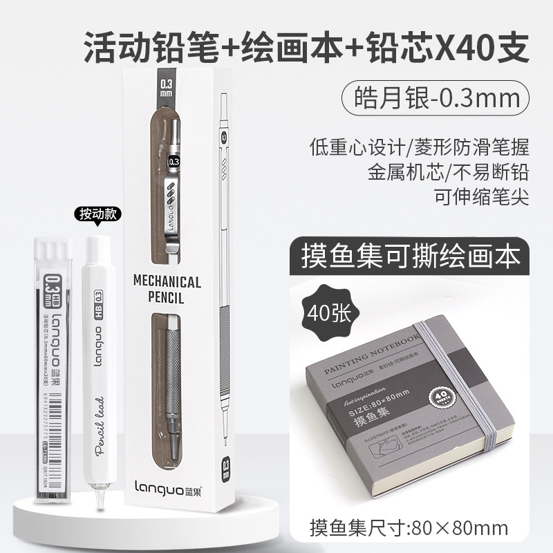 蓝果自动铅笔0.3/0.5/0.7mm全金属专业绘图2b按动活动铅笔素描HB活动铅笔美术笔描边绘画专用低重心重手感