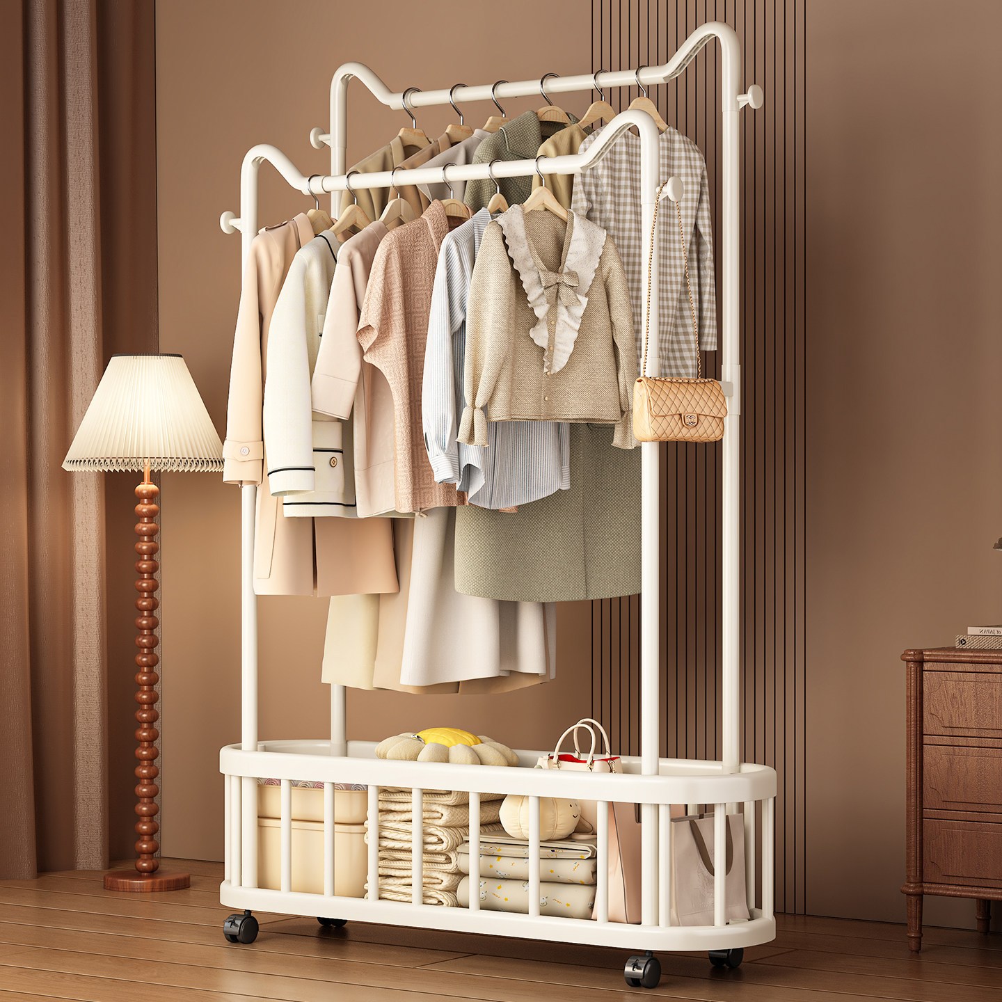 奶油风卧室落地衣架脏衣篓挂衣架家用铁艺衣服架客厅可移动衣帽架