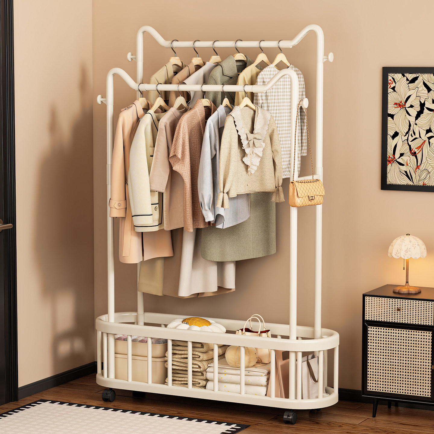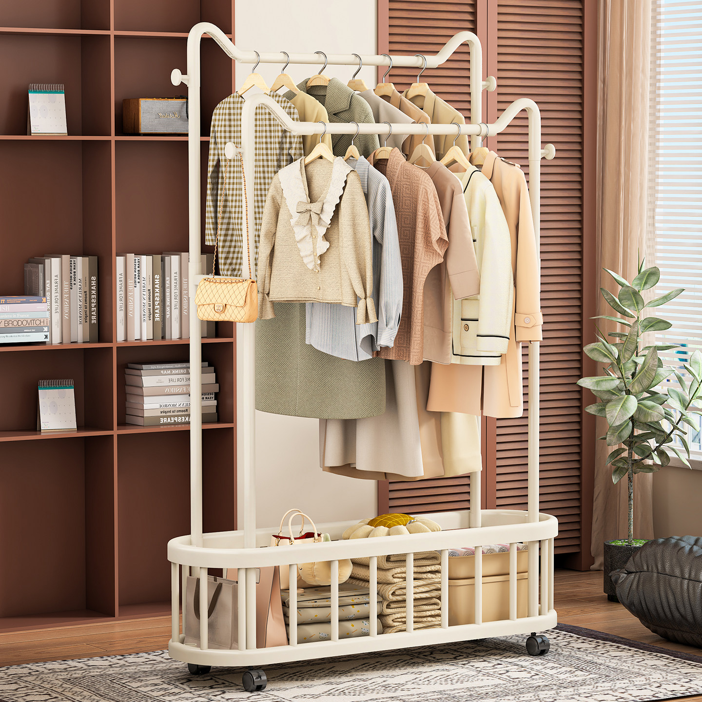 奶油风落地卧室挂衣架网红可移动带轮家用简易衣架阳台晾衣帽架子