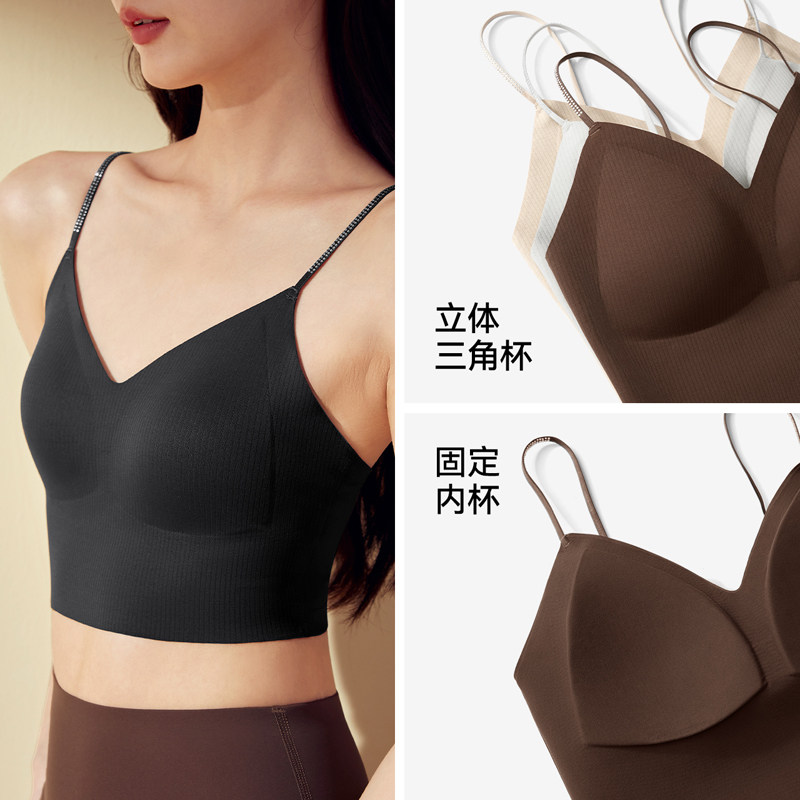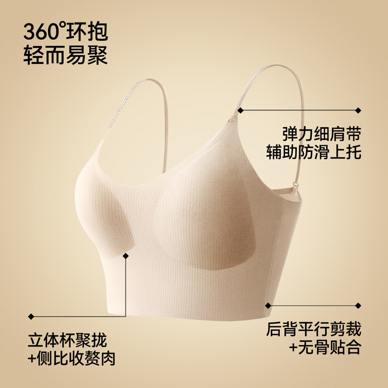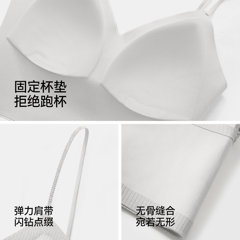 无痕美背抹胸内衣女小胸聚拢可外漏细肩带一体固定杯背心式文胸罩