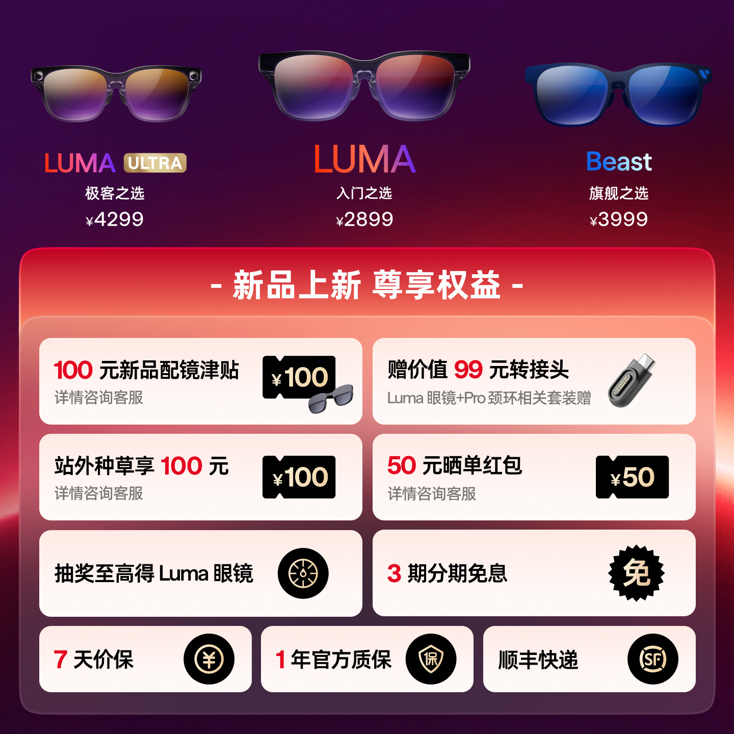 【新品推荐 现货速发】VITURE Luma XR/AR智能眼镜Ultra 152英寸1200P超高清游戏观影 AI2D转3D 适配iPhone17