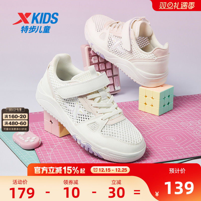 特步童鞋儿童透气小白鞋2025新款女童魔术贴板鞋大童运动休闲鞋子