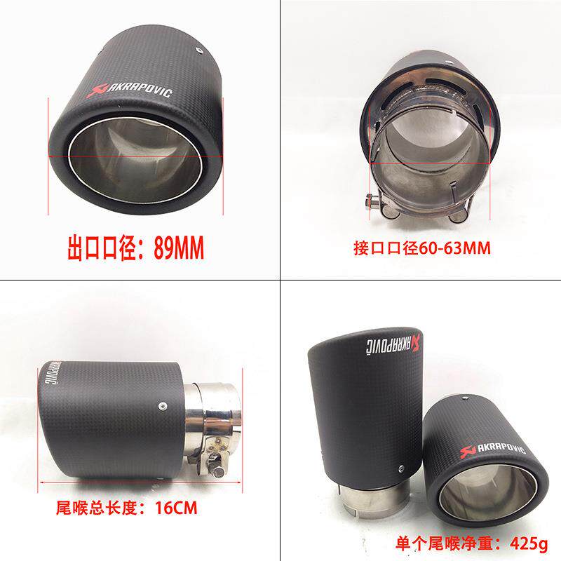 厂家直供天蝎AK碳纤单出改装尾喉出口89MM卷边哑光接口63MM消声器
