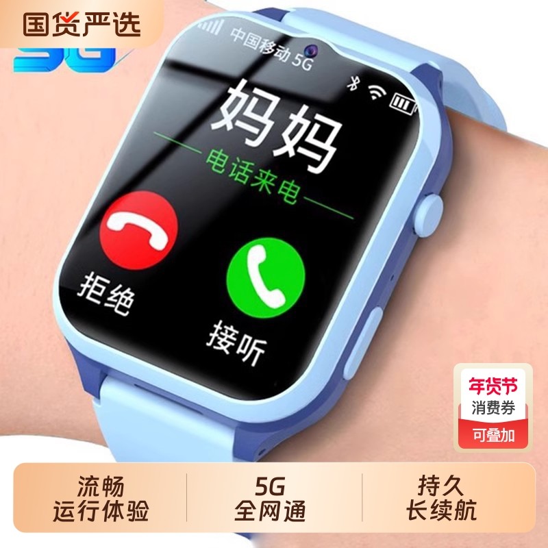 2025新款儿童智能电话手表5G全网通大屏可插卡男女孩小学生青少年专用GPS精准定位长续航WiFi初高中无游戏