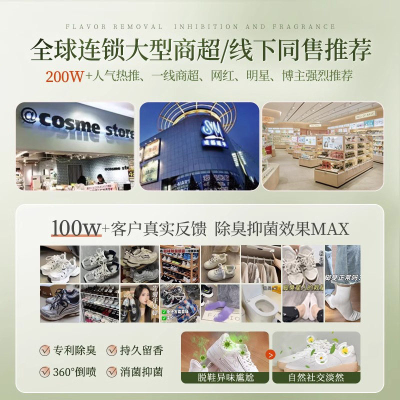 鞋子除臭剂喷雾鞋袜杀菌球鞋柜去异味防脚臭厕所宠物除臭神器防臭