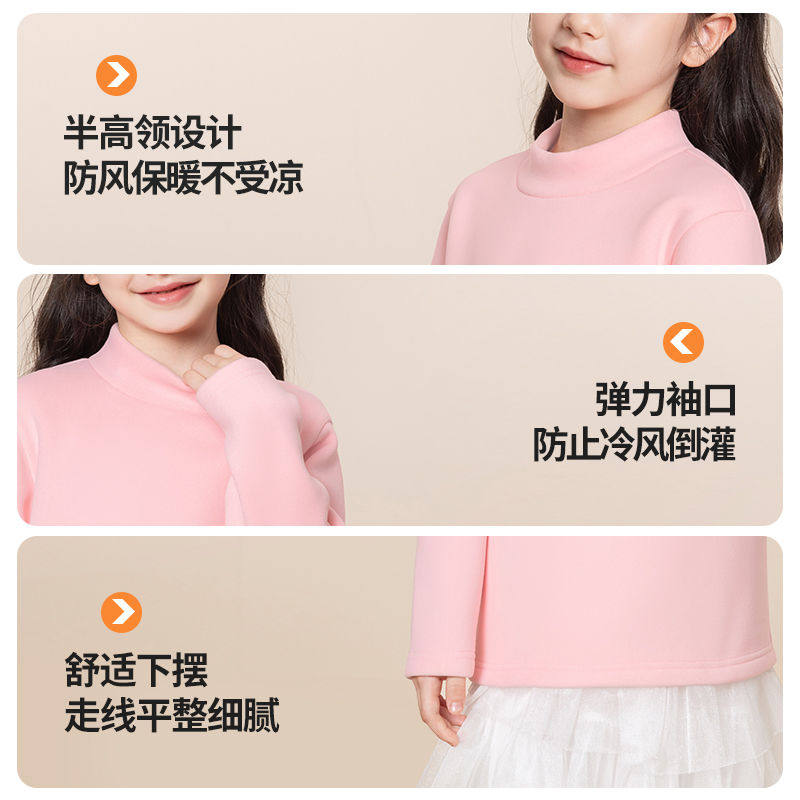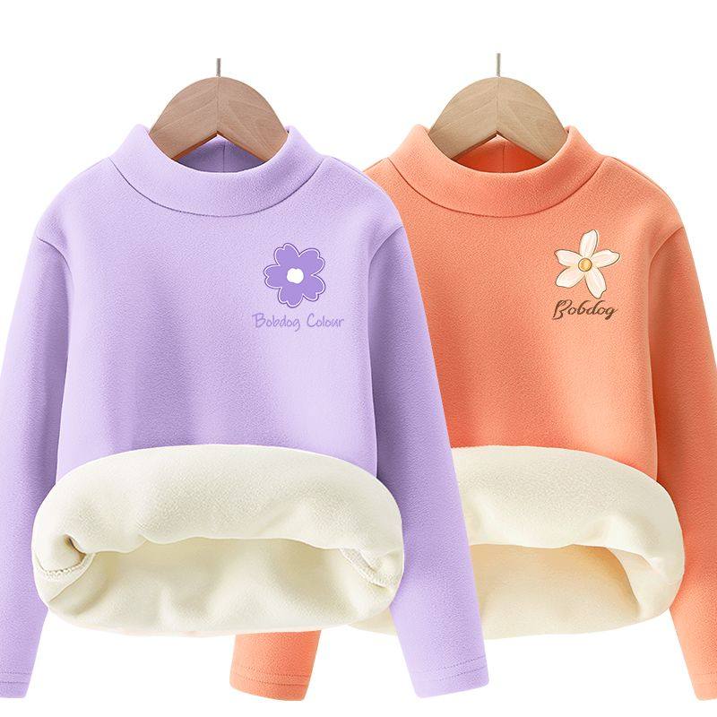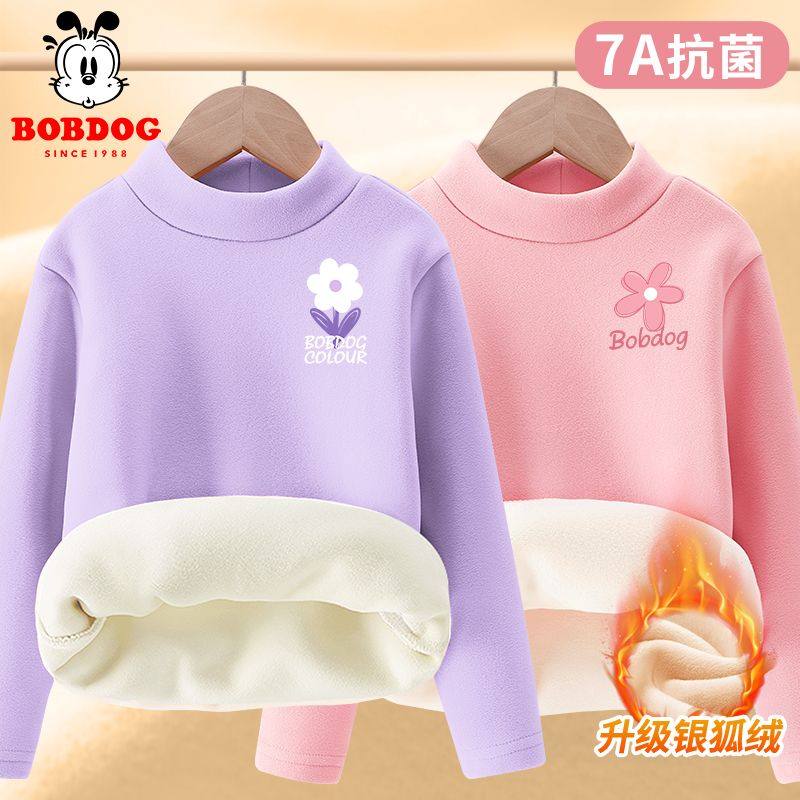 巴布豆女童秋衣加绒秋冬款2025新款儿童德绒打底衫女宝宝保暖上衣