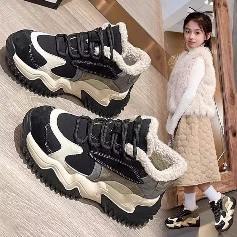 巴布豆女童棉鞋2024新款冬季真皮加绒儿童运动鞋子秋冬款雪地靴子