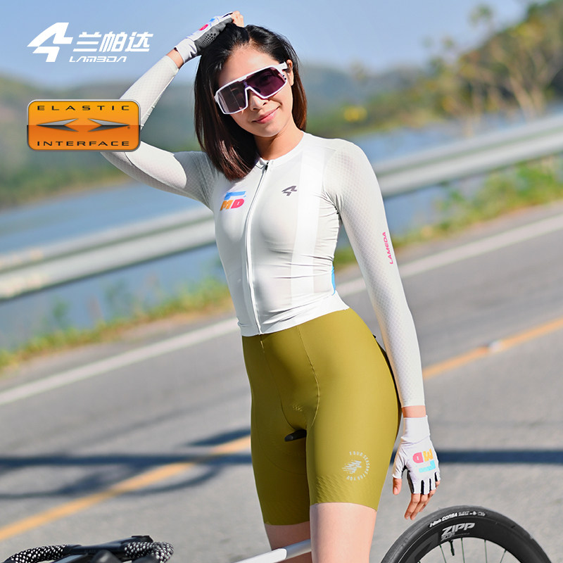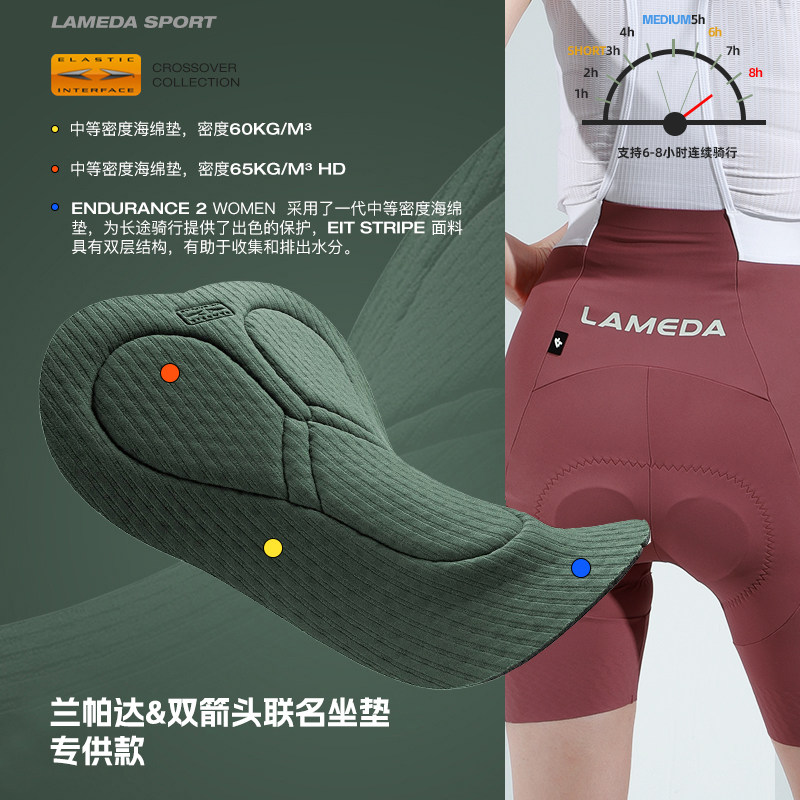 兰帕达双箭头UPF50防晒骑行背带裤虹影女带口袋公路车自行车短裤