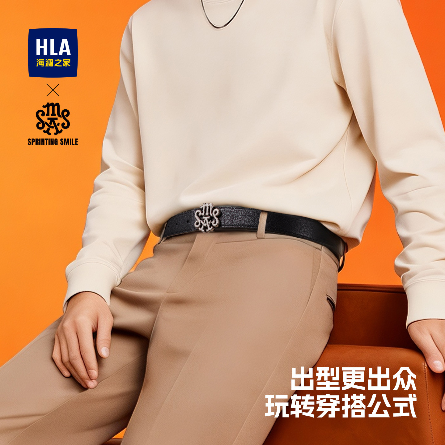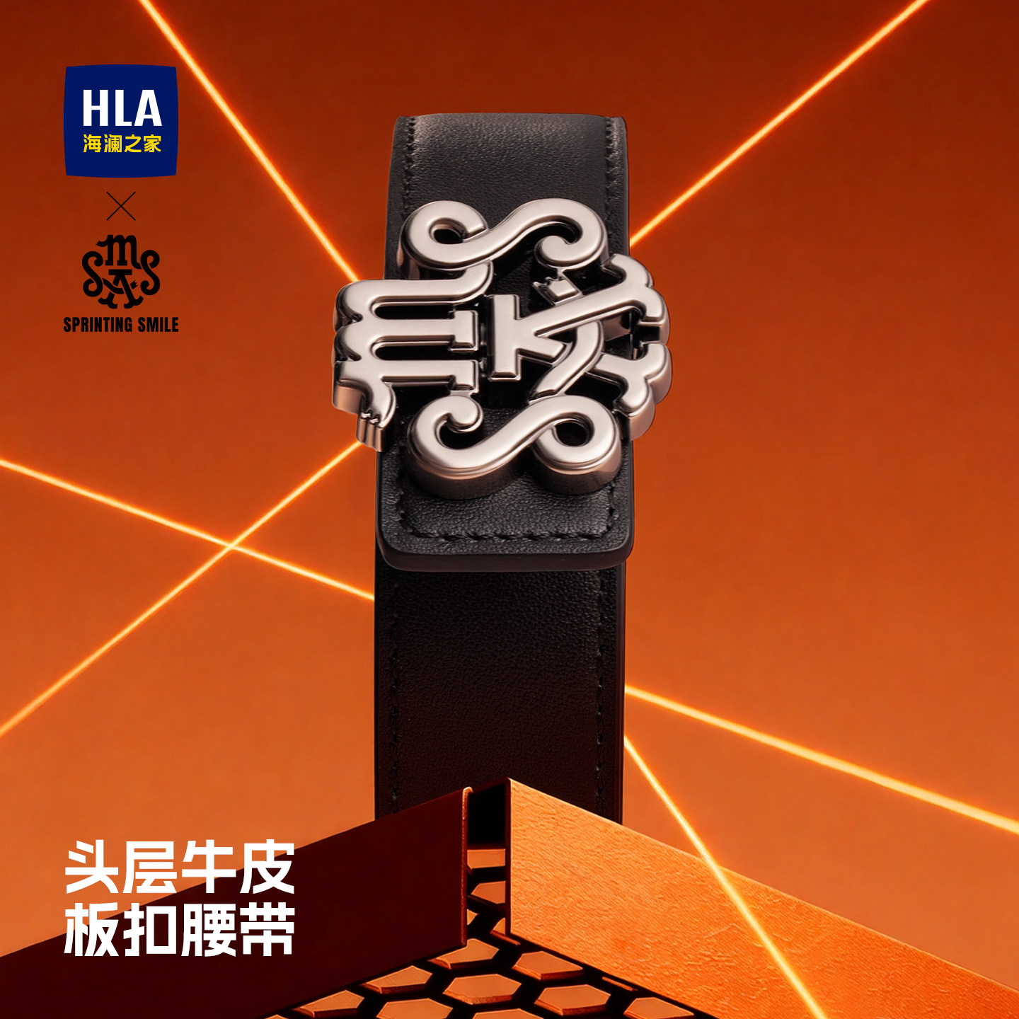 海澜之家板扣皮带男休闲时尚平滑扣头层牛皮腰带潮年轻人真皮裤带