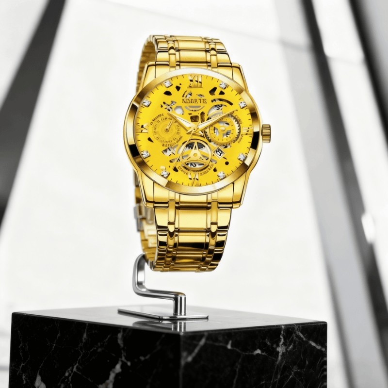 正品瑞士2024新款手表男士全自动机械风防水精钢带双日历男表夜光