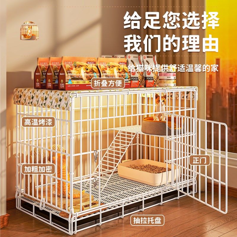 双层猫笼子超大自由空间家用室内猫窝猫厕所一体猫咪折叠幼猫专用