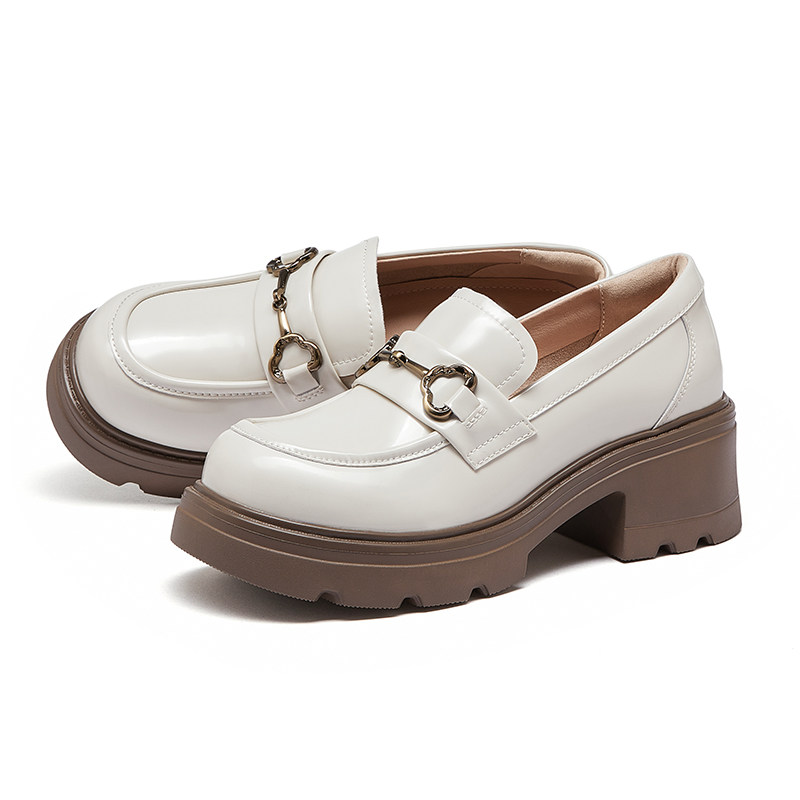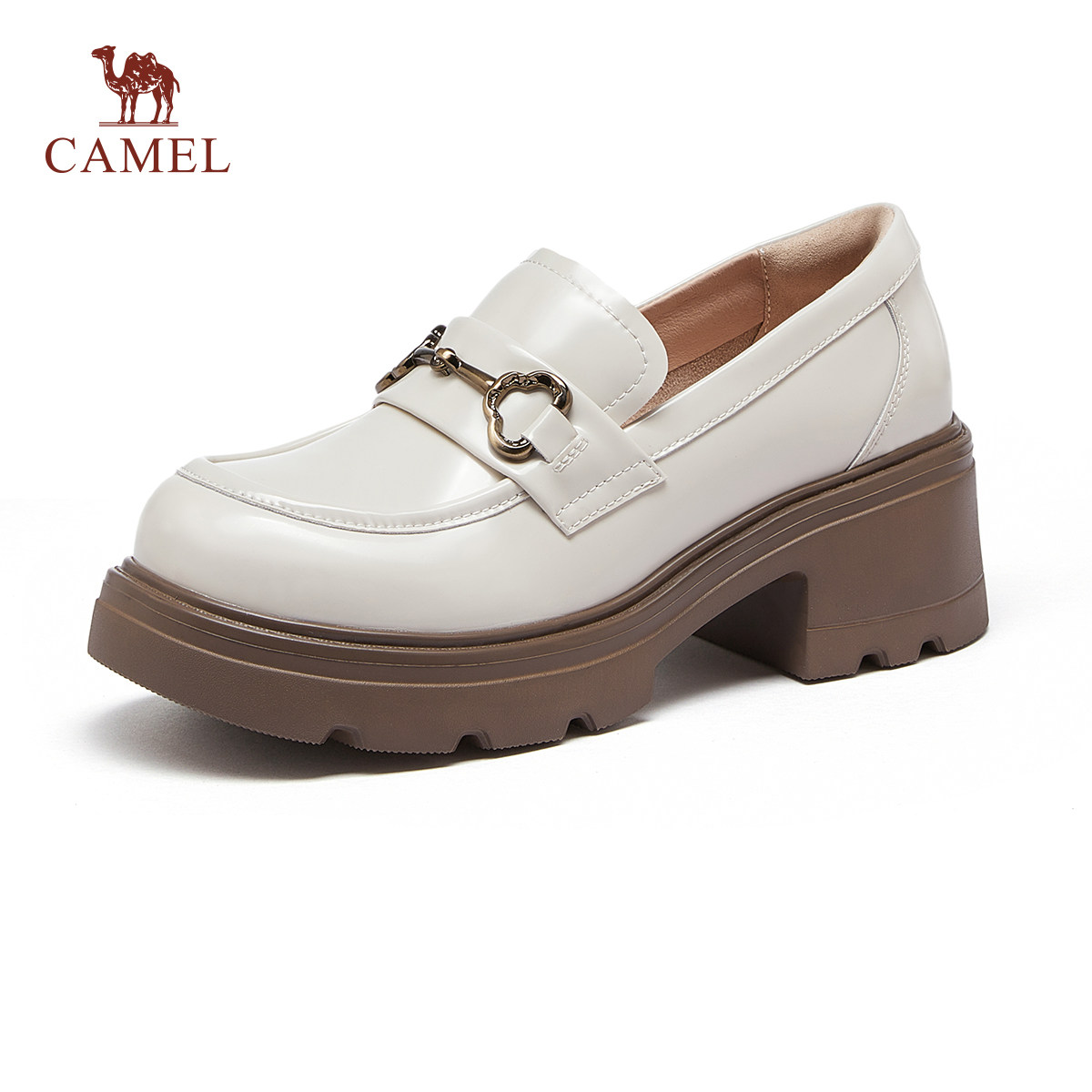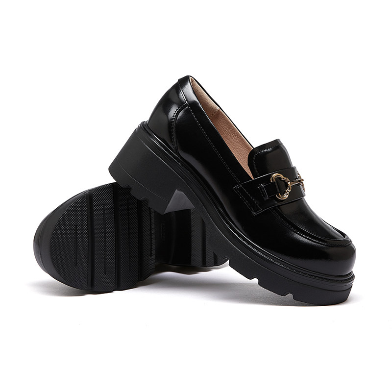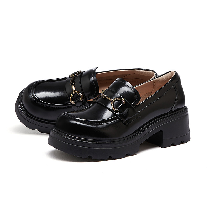 骆驼女鞋2026春季新款JK小皮鞋休闲单鞋厚底粗跟增高黑色乐福鞋女