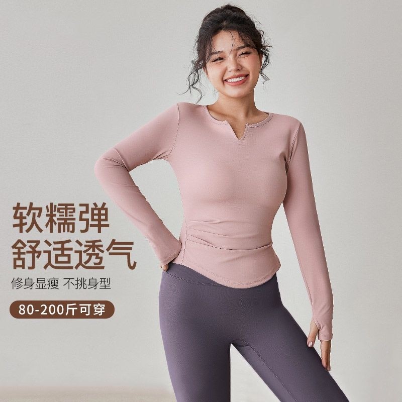 大码瑜伽服女跑步运动上衣显瘦高颜值胖mm普拉提训练服健身衣长袖