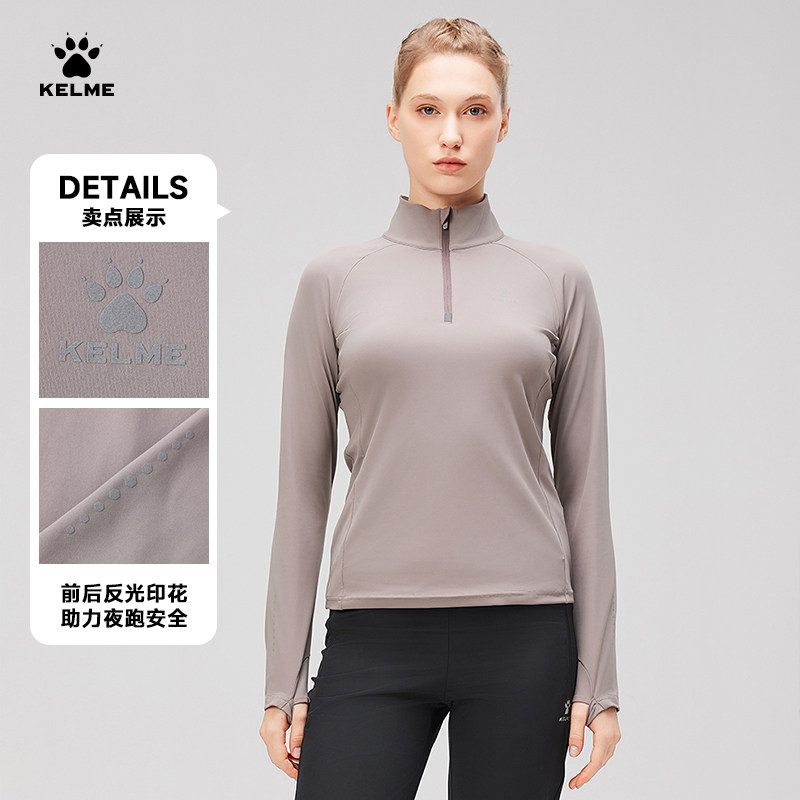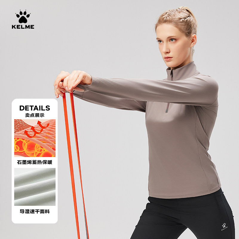 卡尔美运动速干衣女长袖秋冬季半拉链跑步上衣t恤保暖健身瑜伽服