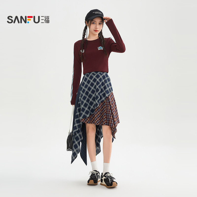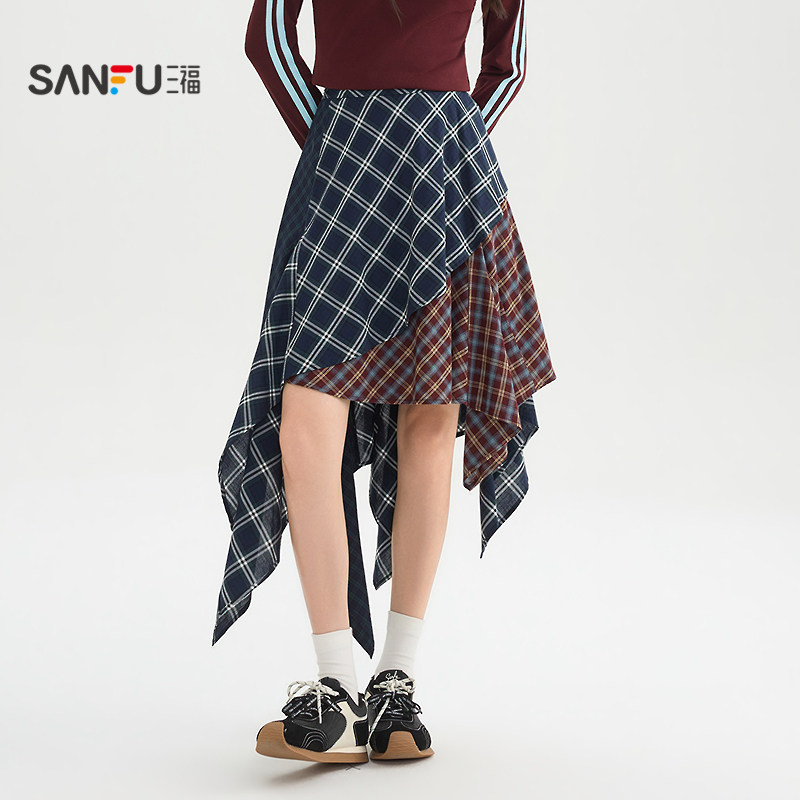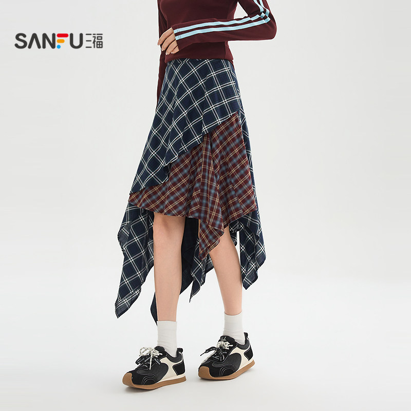 三福长裙2026新款春季时尚气质拼接不规则散摆半身裙子女装517590