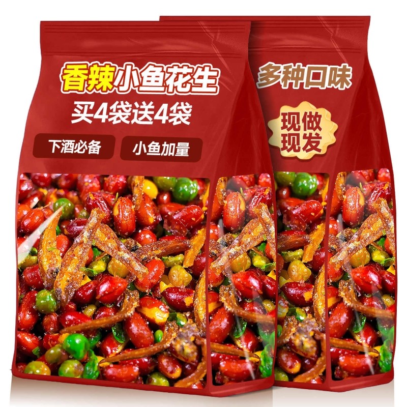 小鱼花生米开袋即食下酒菜特产油炸红皮花生炒货商用休闲解馋零食