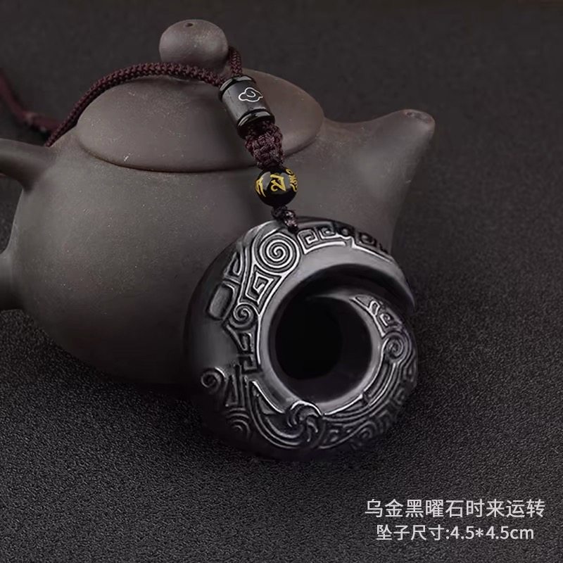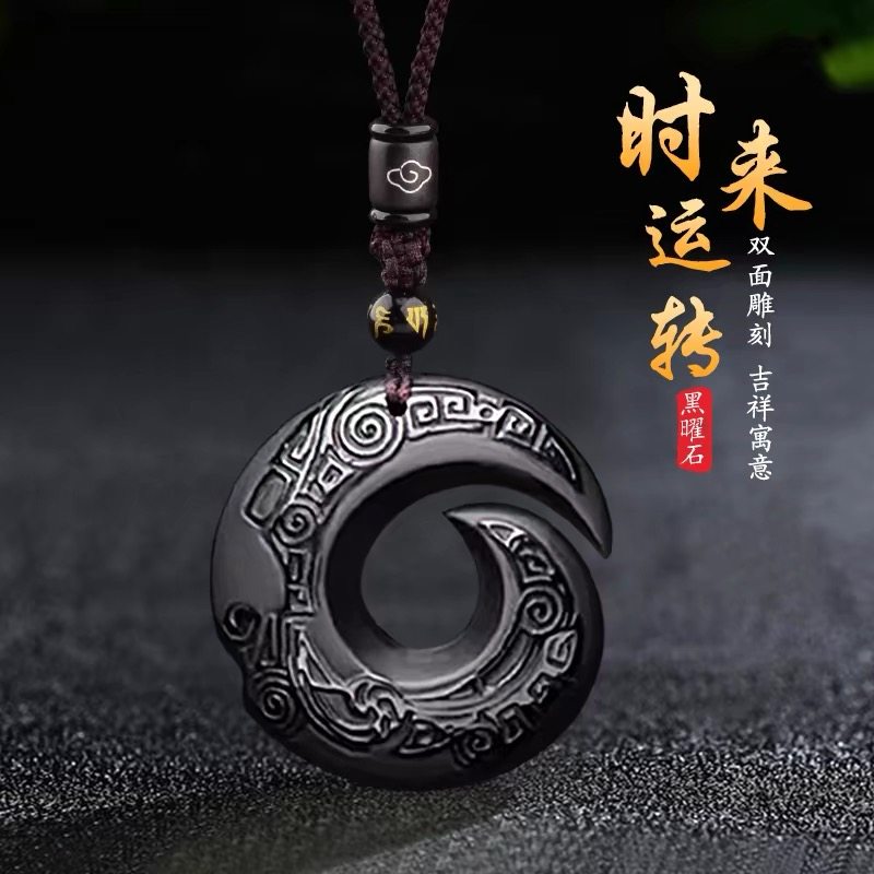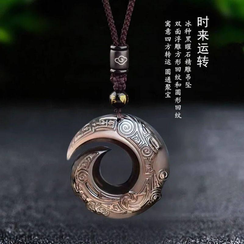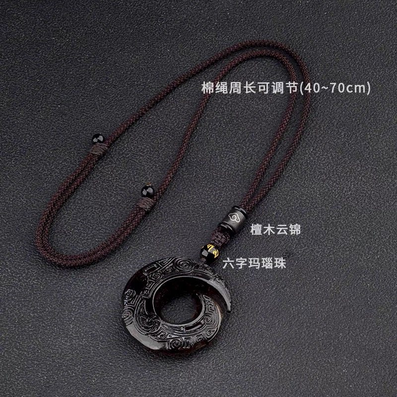 天然冰种黑曜石男士吊坠平安扣挂绳时来运转玉石正品项链水晶挂坠