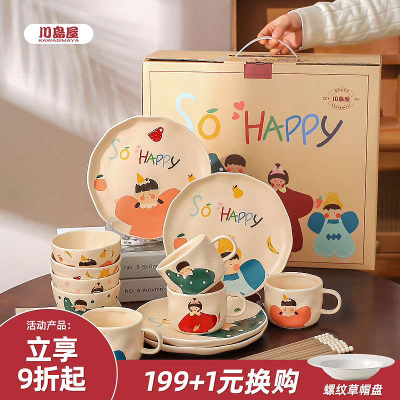 川岛屋一家四口餐具碗碟套装家用乔迁新居礼品结婚新婚生日礼物女