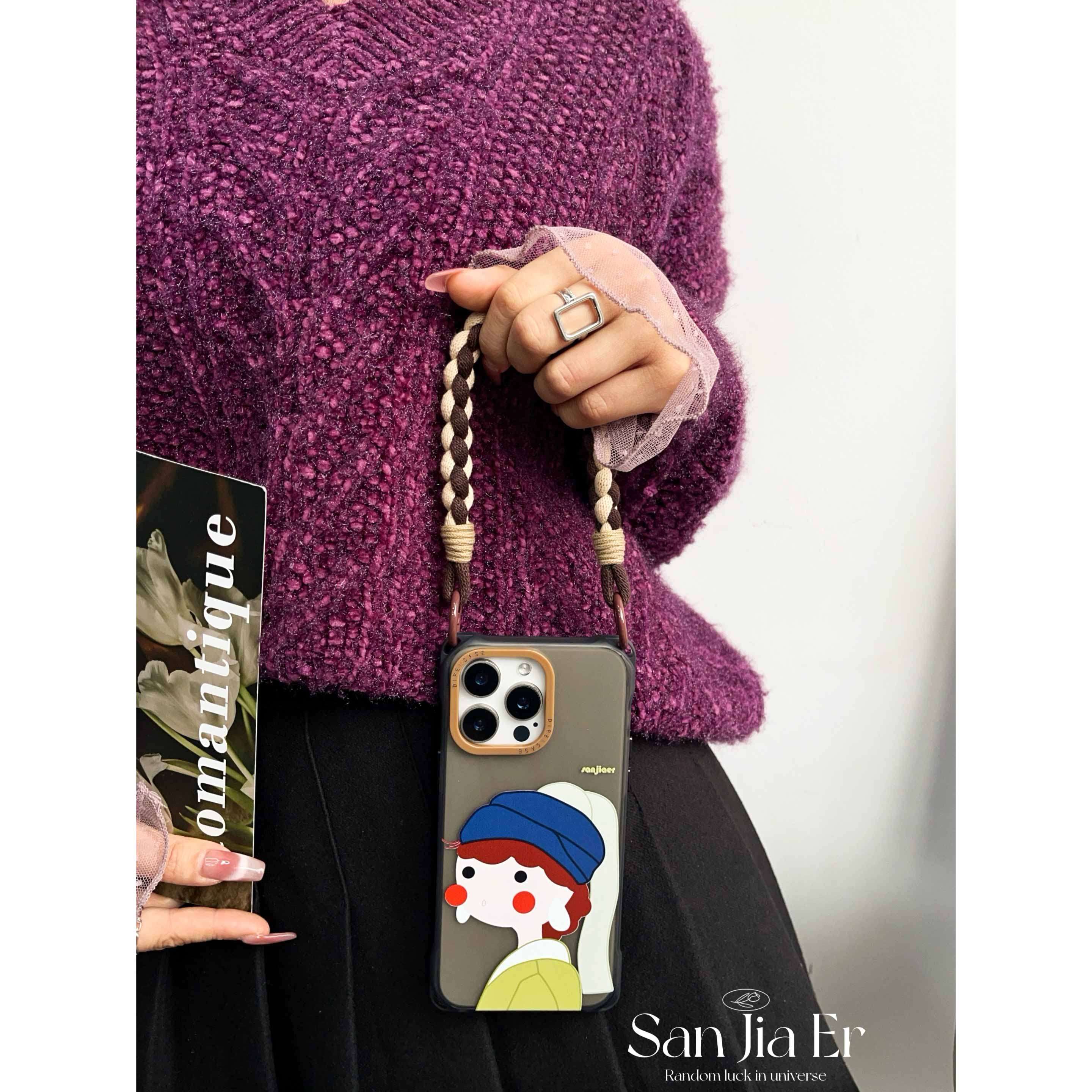 创意女孩16Promax可挂绳手机壳斜挎手腕适用于苹果小米15/14华为MATE70/60防摔四角开孔荣耀200新款nova13/12