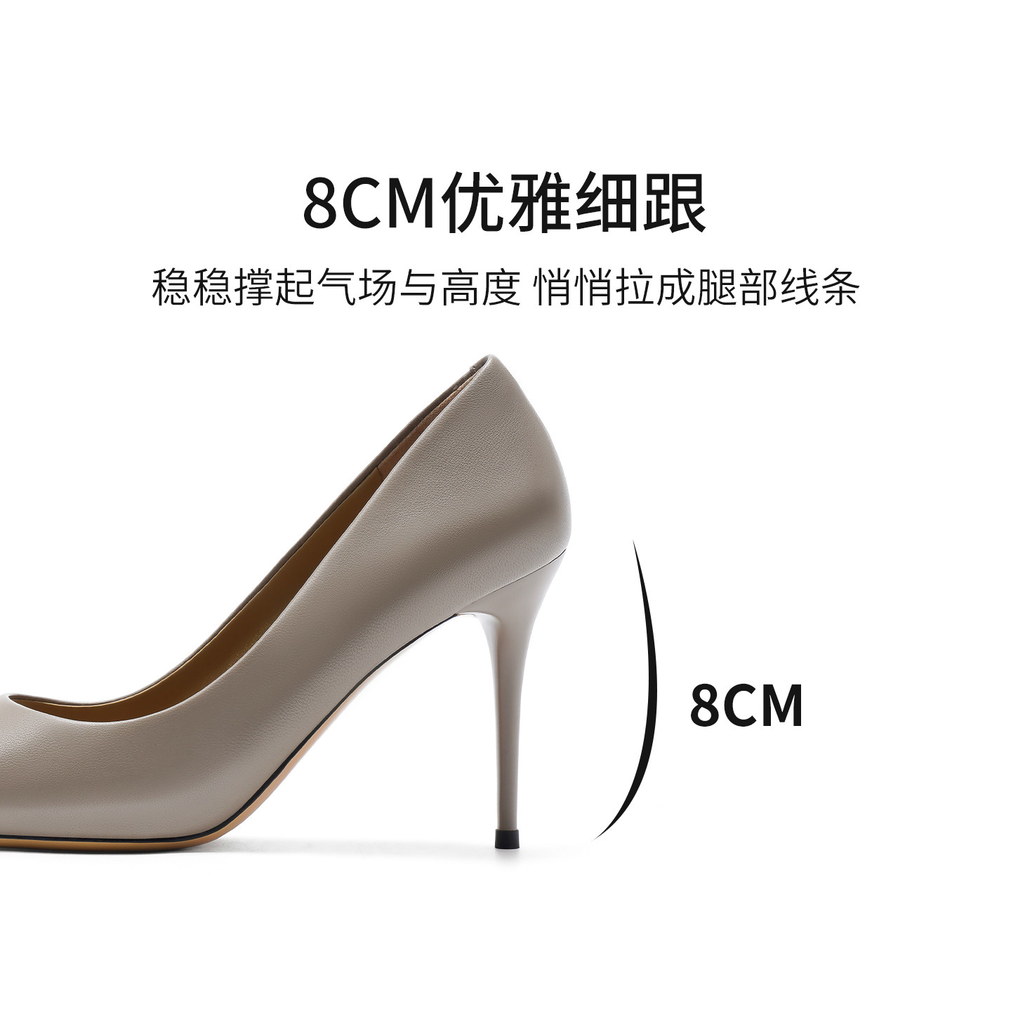 【明星同款|静音系列】千百度练习曲裸色高跟鞋真皮通勤法式单鞋