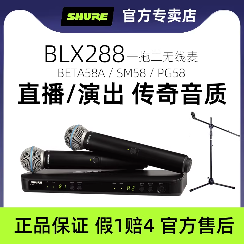 shure/舒尔beta58a无线麦克风BLX288一拖二户外直播k歌sm58话筒