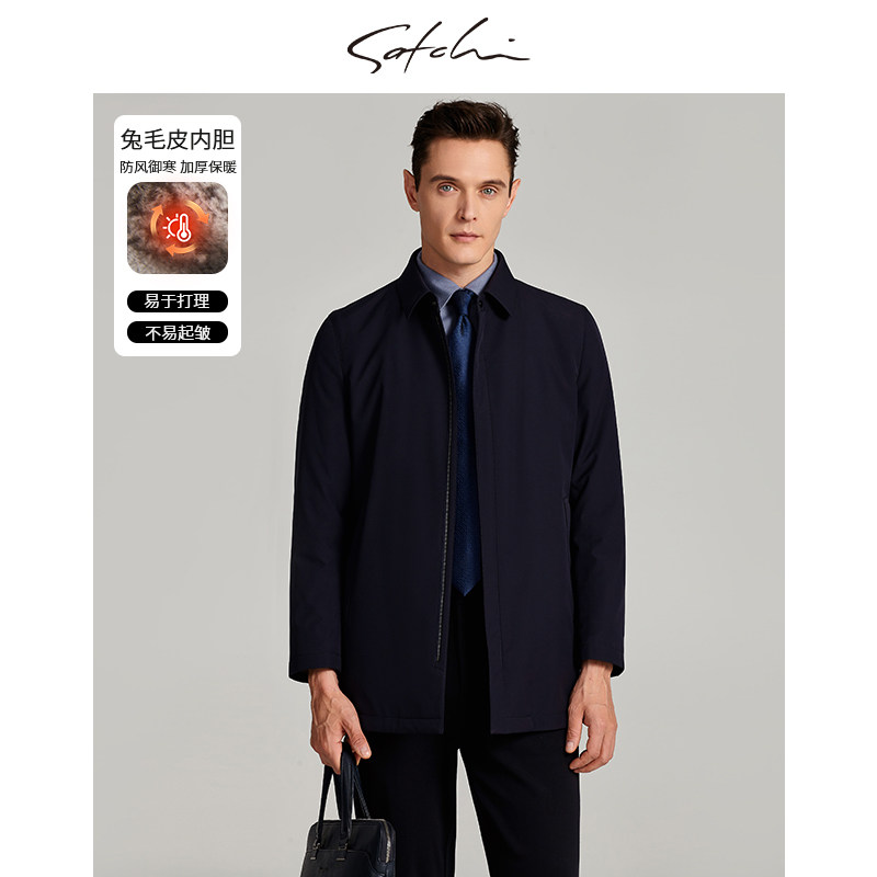 SATCHI沙驰男装男士皮草冬季新款兔毛内胆中长款商务加胆外套