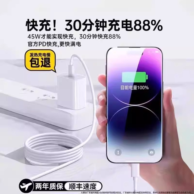 i官方正品45W认证快充适用苹果17充电器头iphone16promax手机15pro插头14原max数据线13装12ipadPD闪接口