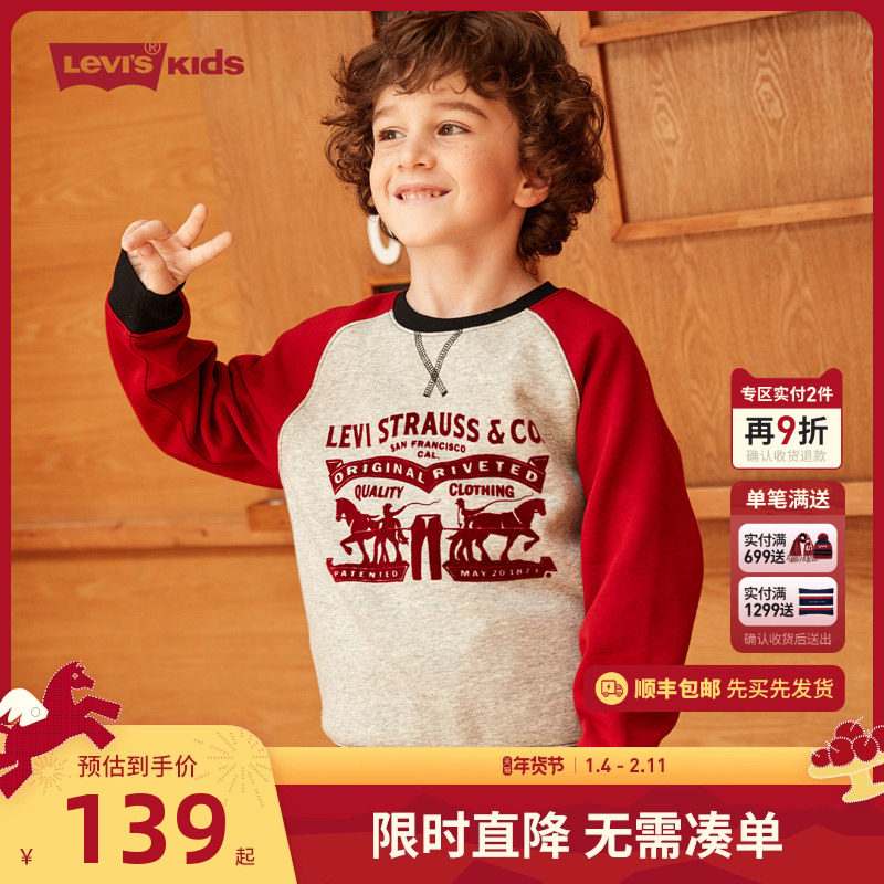 李维斯童装2025秋冬新款中大童宝宝加厚上衣男童保暖加绒红色卫衣