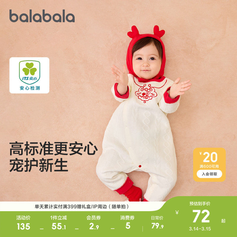 巴拉巴拉童装婴儿连体衣新生儿宝宝包屁衣满月爬服夹棉红色拜年服