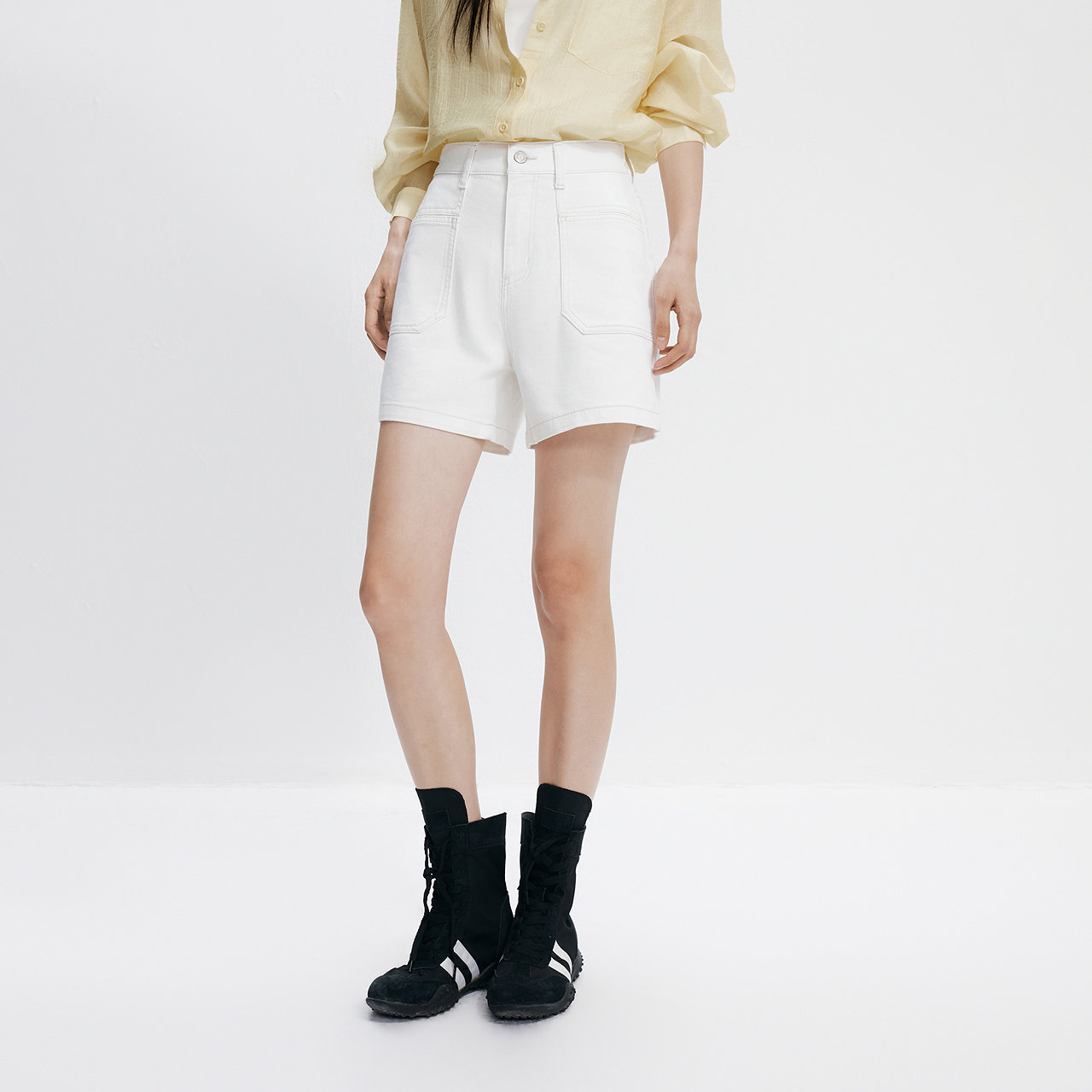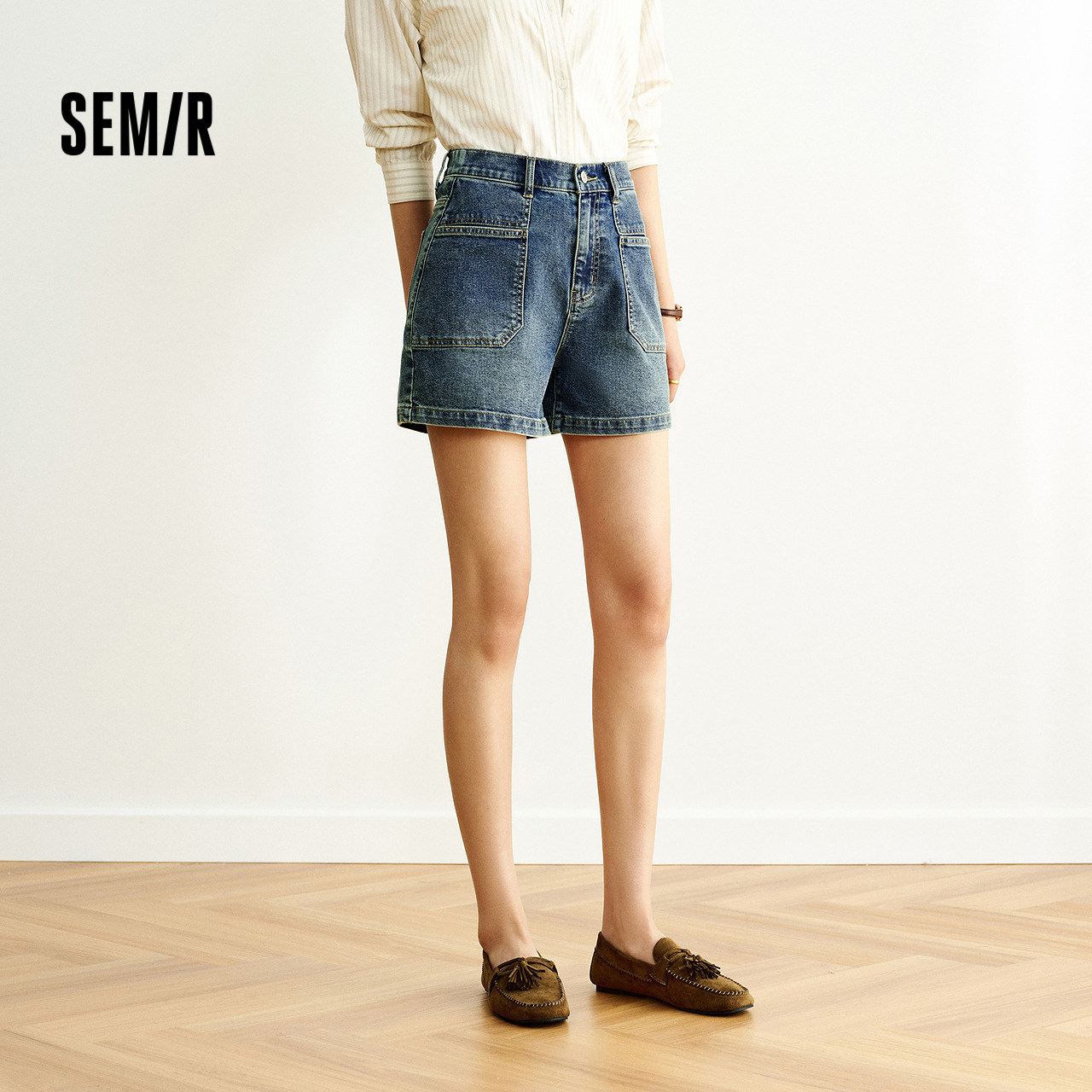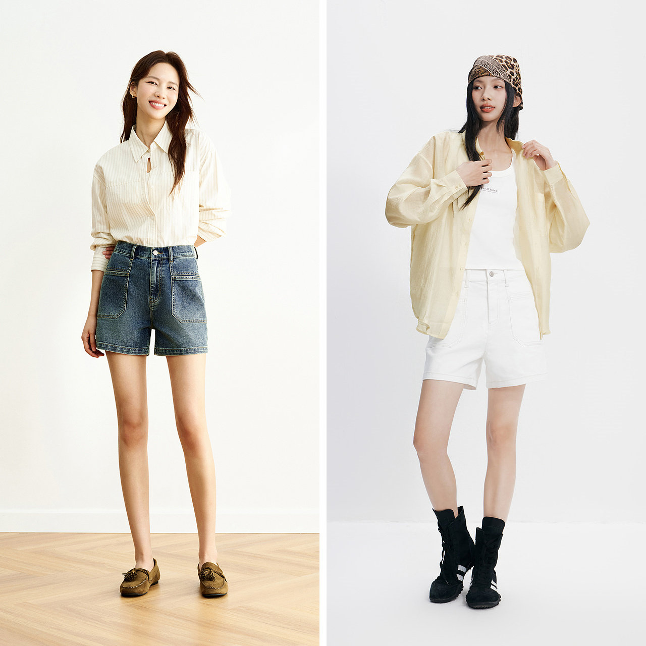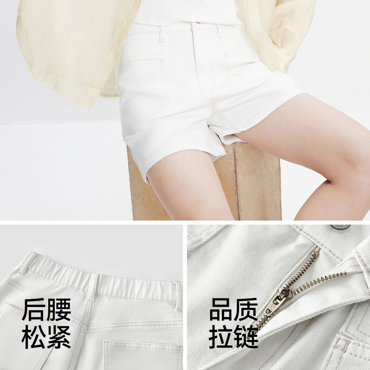 森柔|森马牛仔裤女夏季做旧半松紧腰短裤复古时尚潮流舒适直筒裤