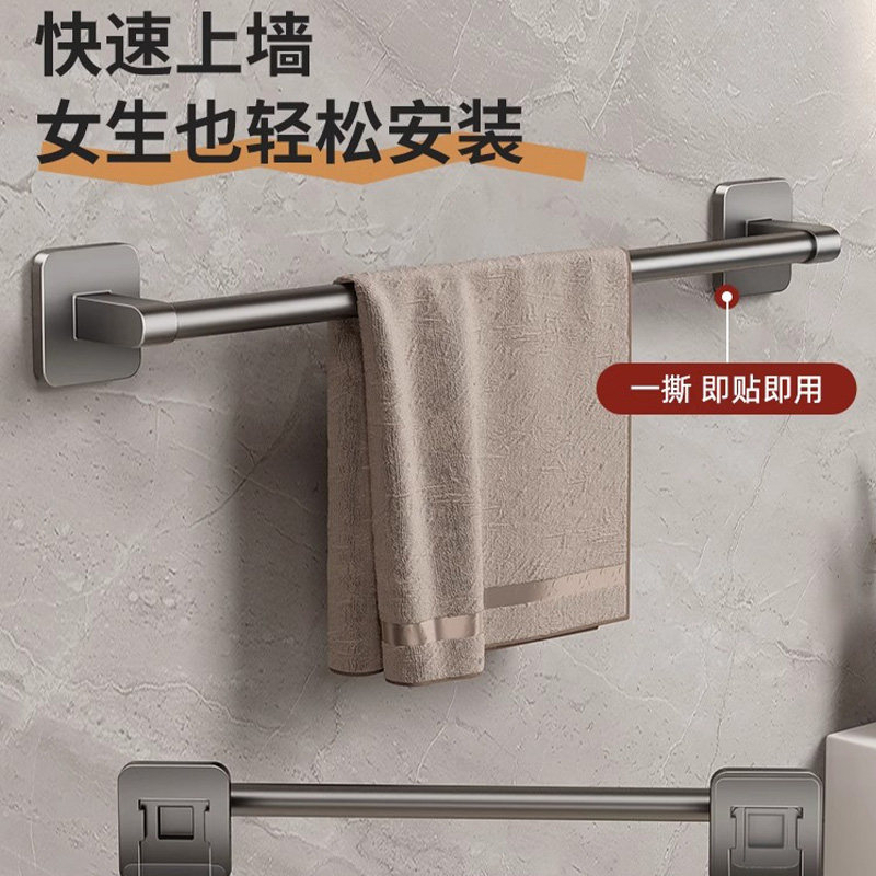 百悍毛巾杆毛巾架卫生间免打孔挂杆置物架浴室架子卫浴厕所洗手间