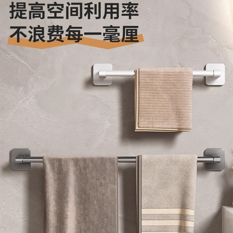 毛巾杆免打孔卫生间加长浴室双杆壁挂式毛巾架厕所单杆拖鞋置物架