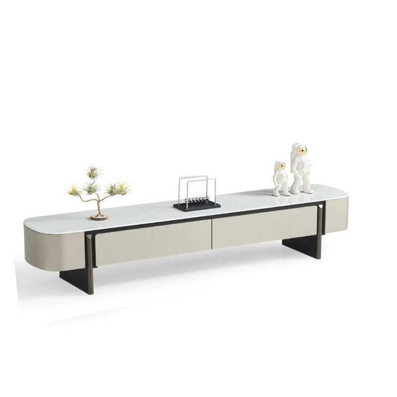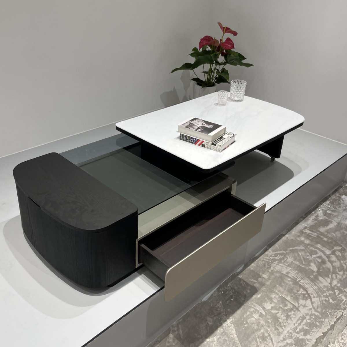 现代简约微晶石茶几小户型轻奢旋转长方形茶几伸缩电视柜地柜组合