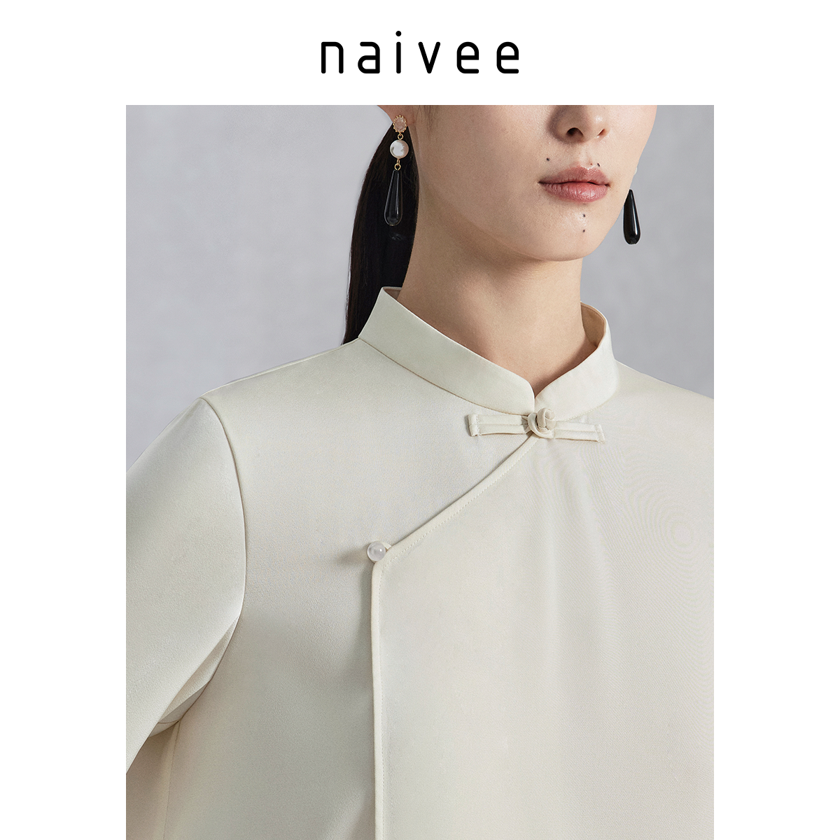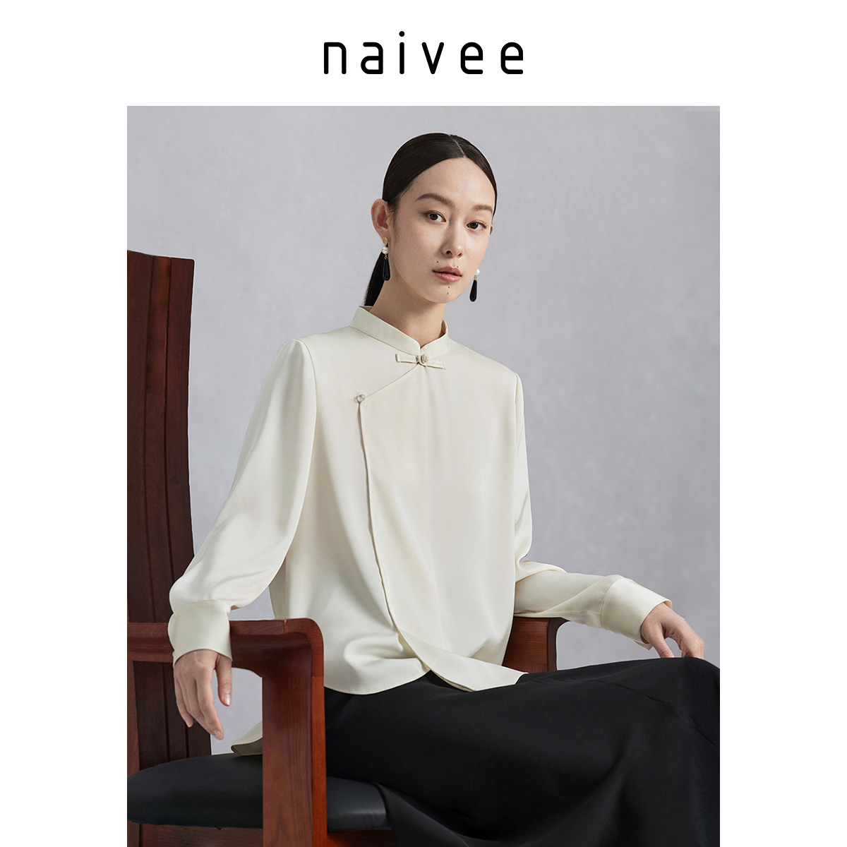 明星同款』naivee纳薇秋冬新中式通勤白衬衫长袖上衣女