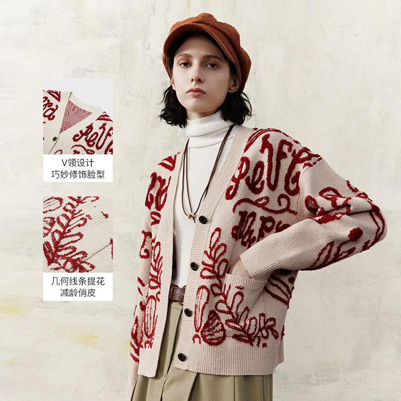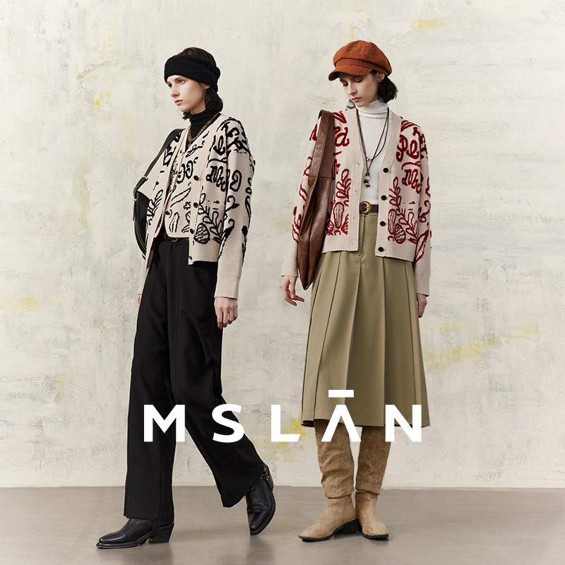 好运龍龍/ MSLAN复古国风几何线条针织开衫外套MGAW211