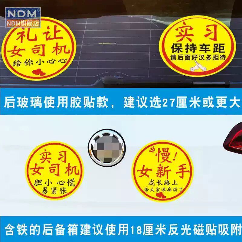 实习车贴磁吸女司机新手上路创意标志汽车贴纸磁性划痕遮挡反光贴