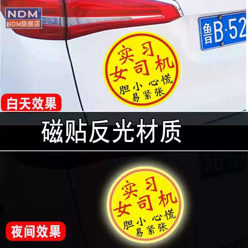 实习车贴新手上路反光磁贴汽车贴纸创意实习期专用磁吸标志女司机