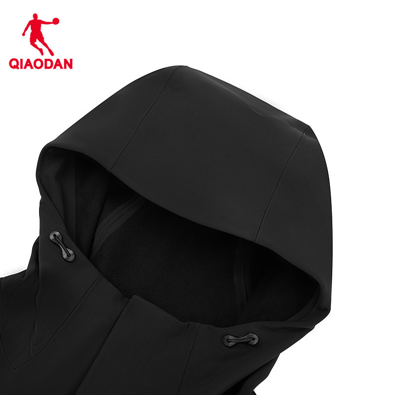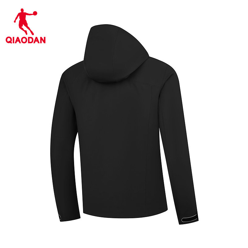 特步防泼水夹克外套男春秋季户外风衣连帽黑色上衣防风运动训练服