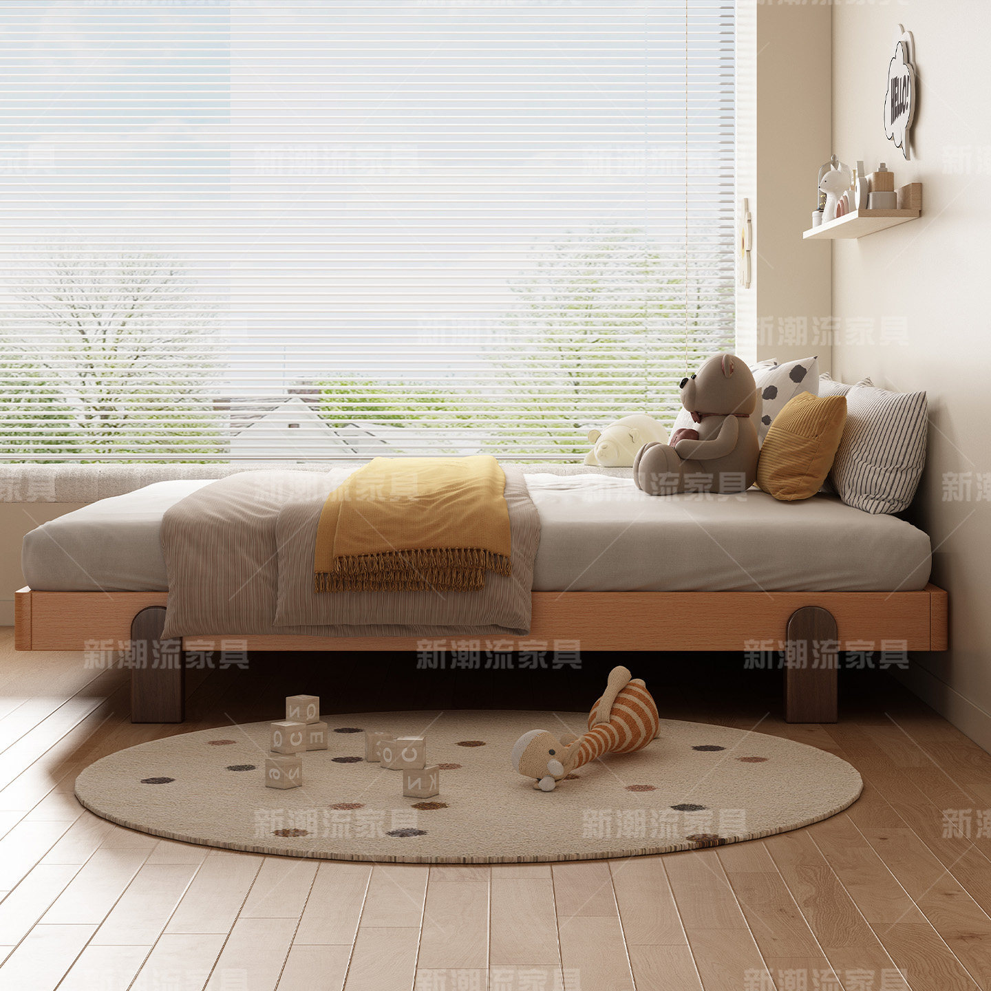 实木床全榉木无床头家用卧室架实木床板儿童床榻榻米单人床地台床