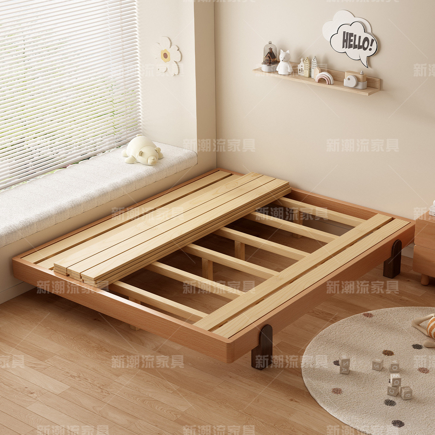 全实木榻榻米无床头排骨架床架1.5m卧室中小户型齐边床可定制尺寸