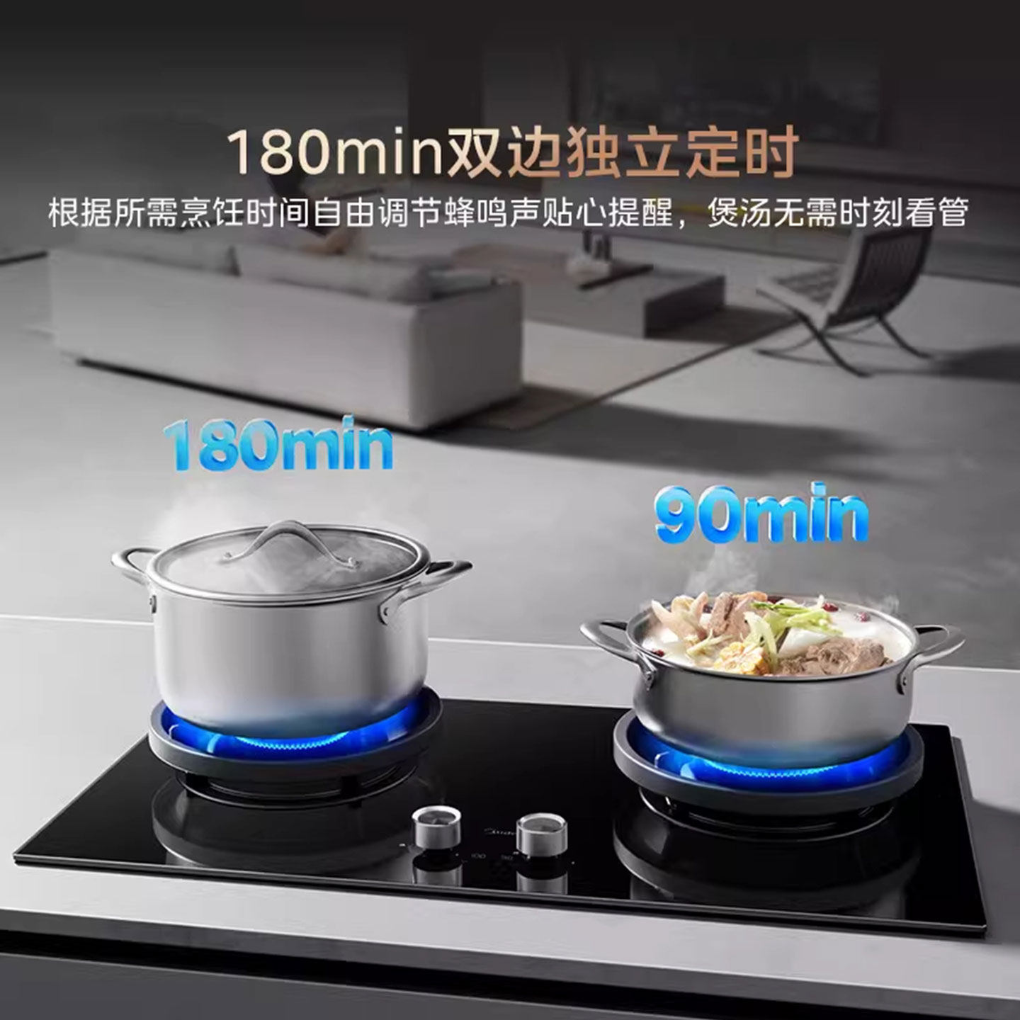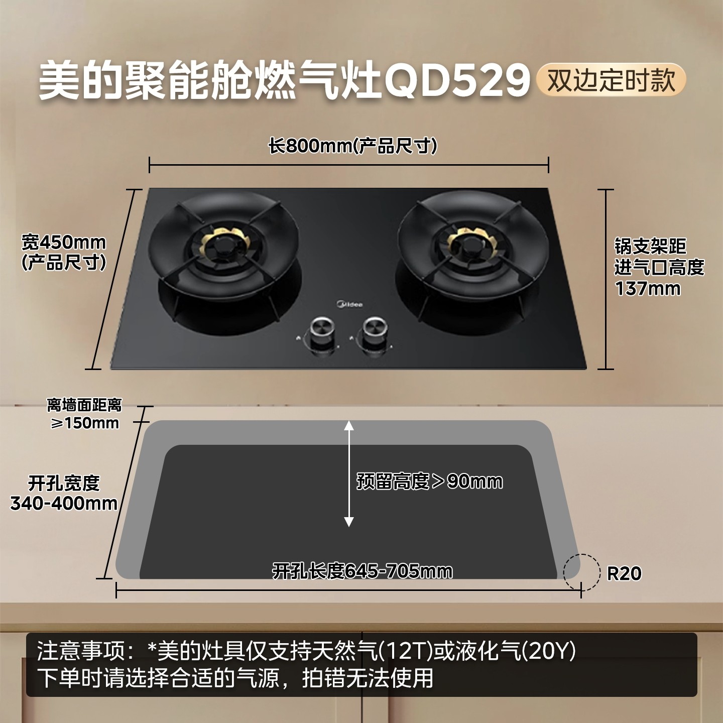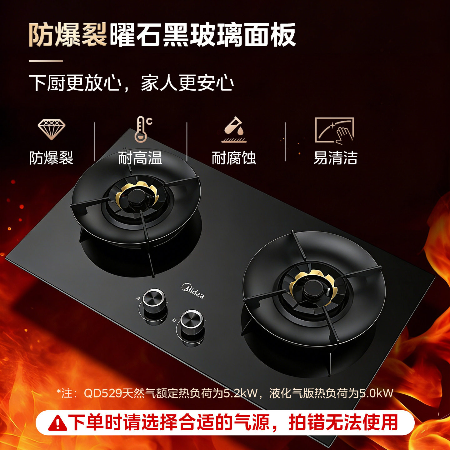 美的QD529燃气灶双边定时大火力家用灶具台嵌两用官方旗舰店正品