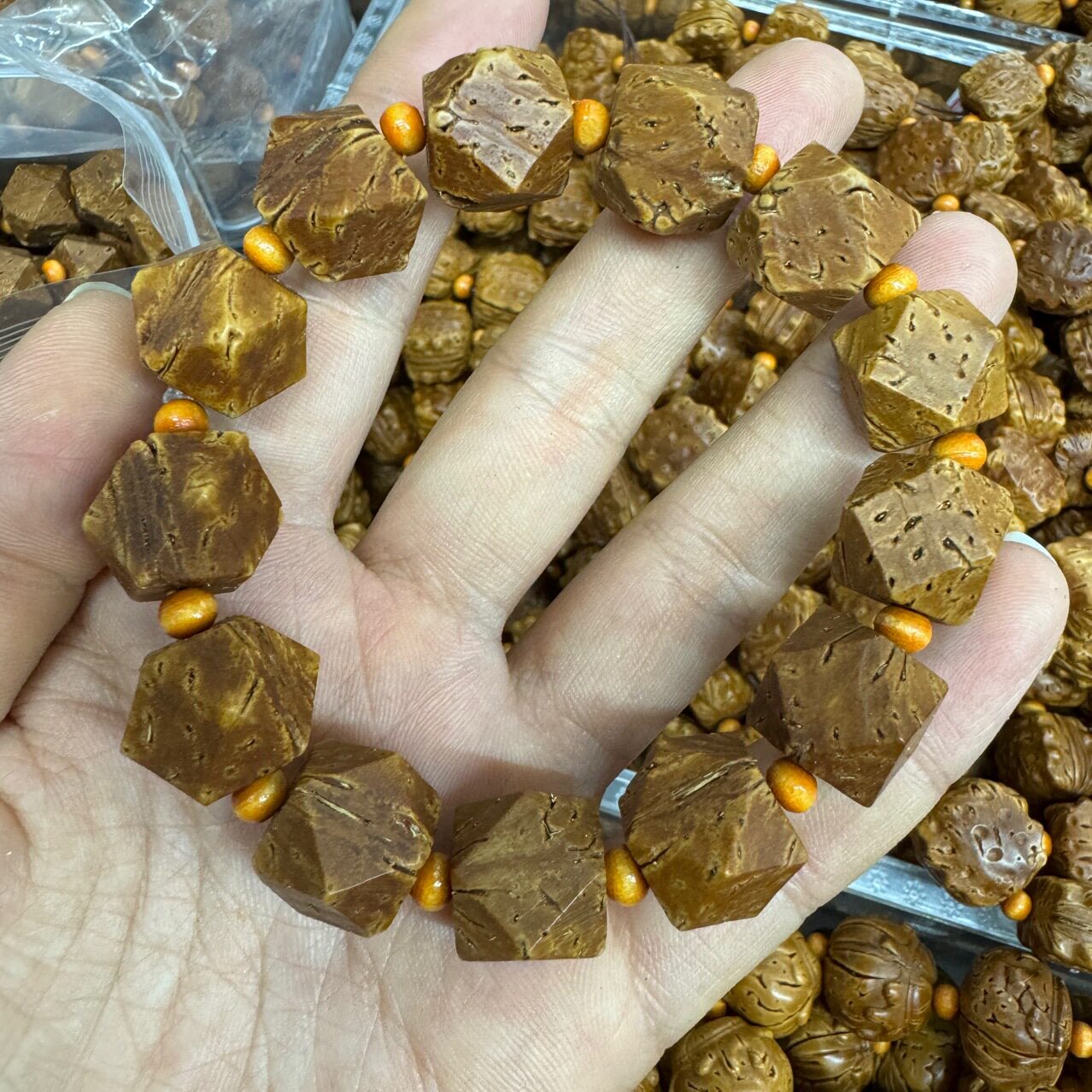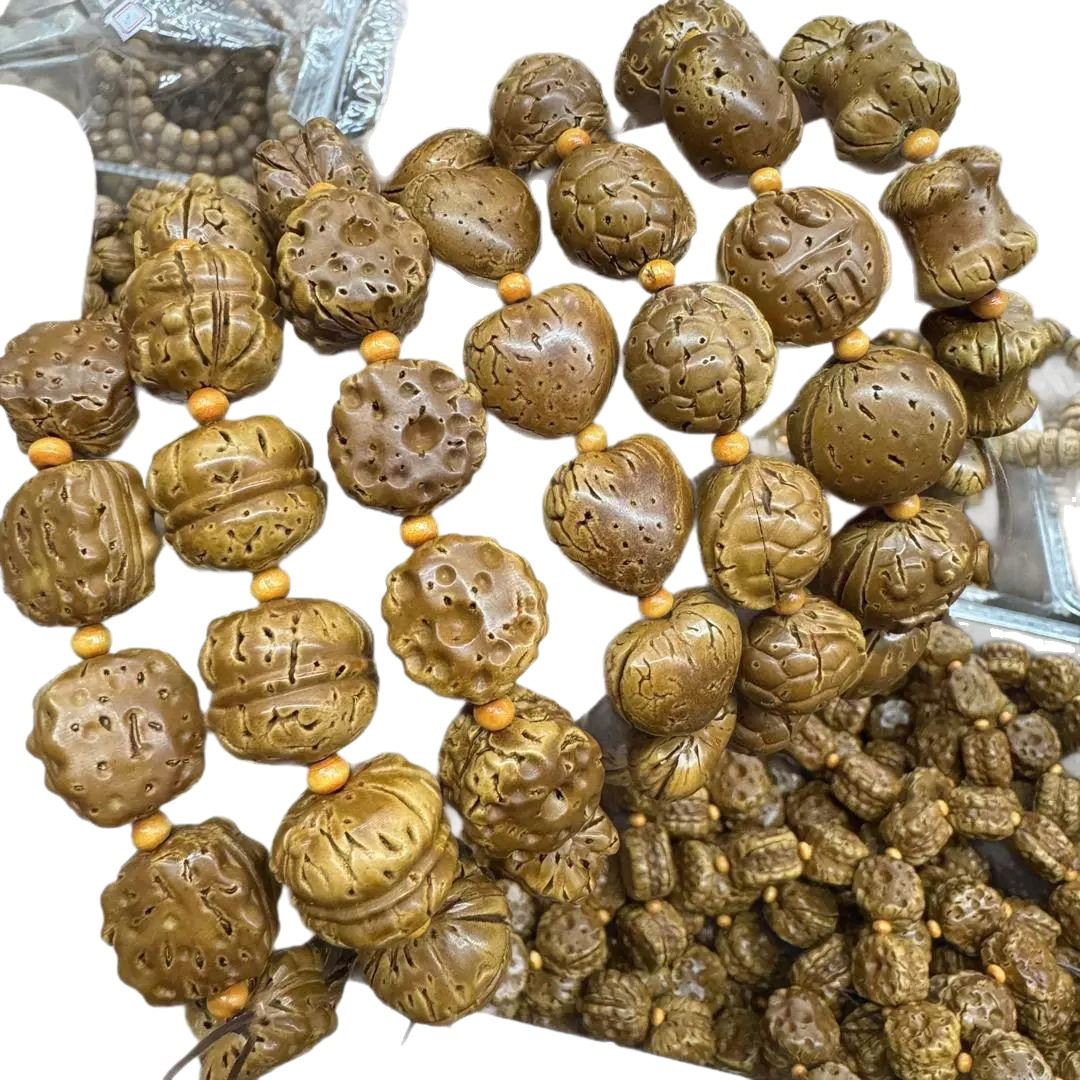 桃核雕刻猫头五角星招财猫蜜罐M豆饼干手串手持手链老油核文檀木