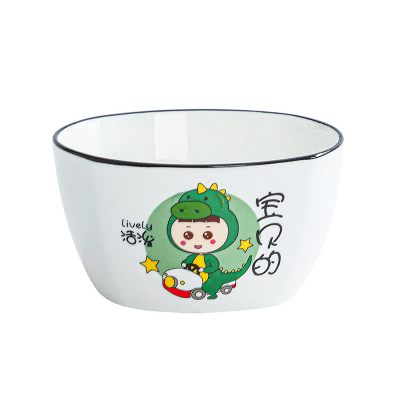 创意卡通可爱萌宠恐龙饭碗餐盘组合套装家用高颜值陶瓷方形碗菜盘